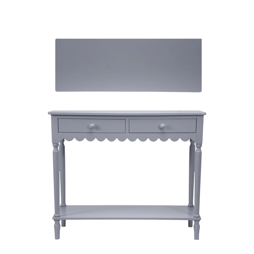 Wood Scalloped Console Table with 2 Drawers & 1 Shelf, Blue
