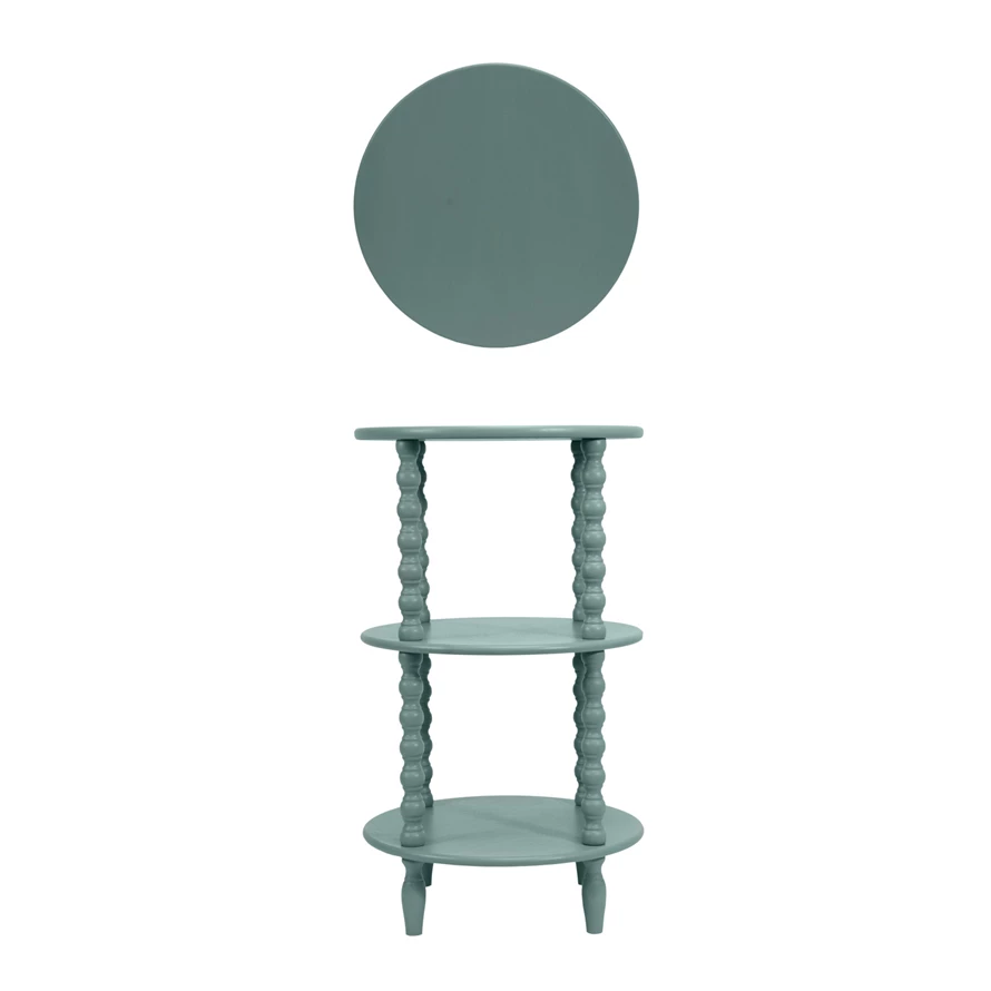 Wood Table with 2 Shelves & Turned Legs, Blue, KD