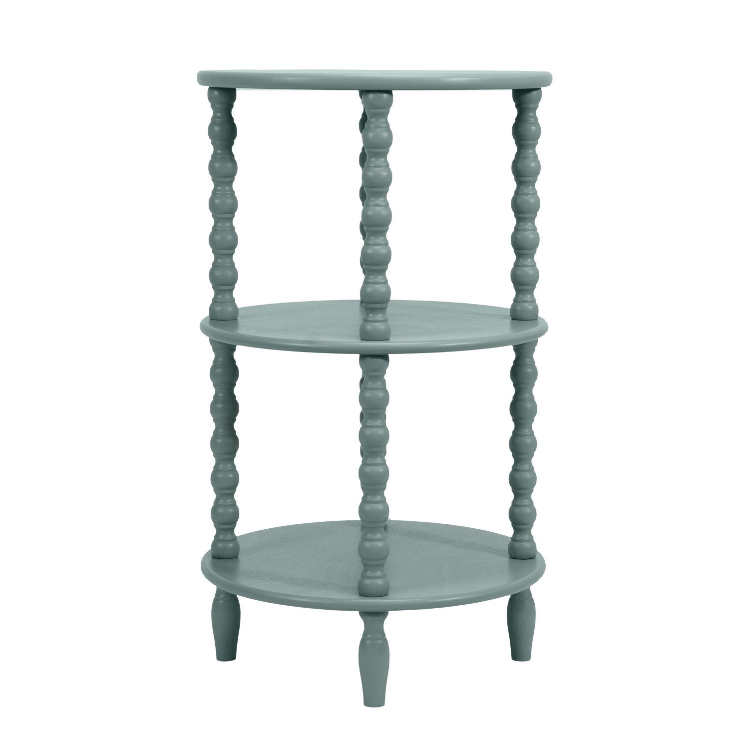 Catalog Name: 17-3/4" Round x 30"H MDF & Wood Table w/ 2 Shelves & Turned Legs, Blue, KD