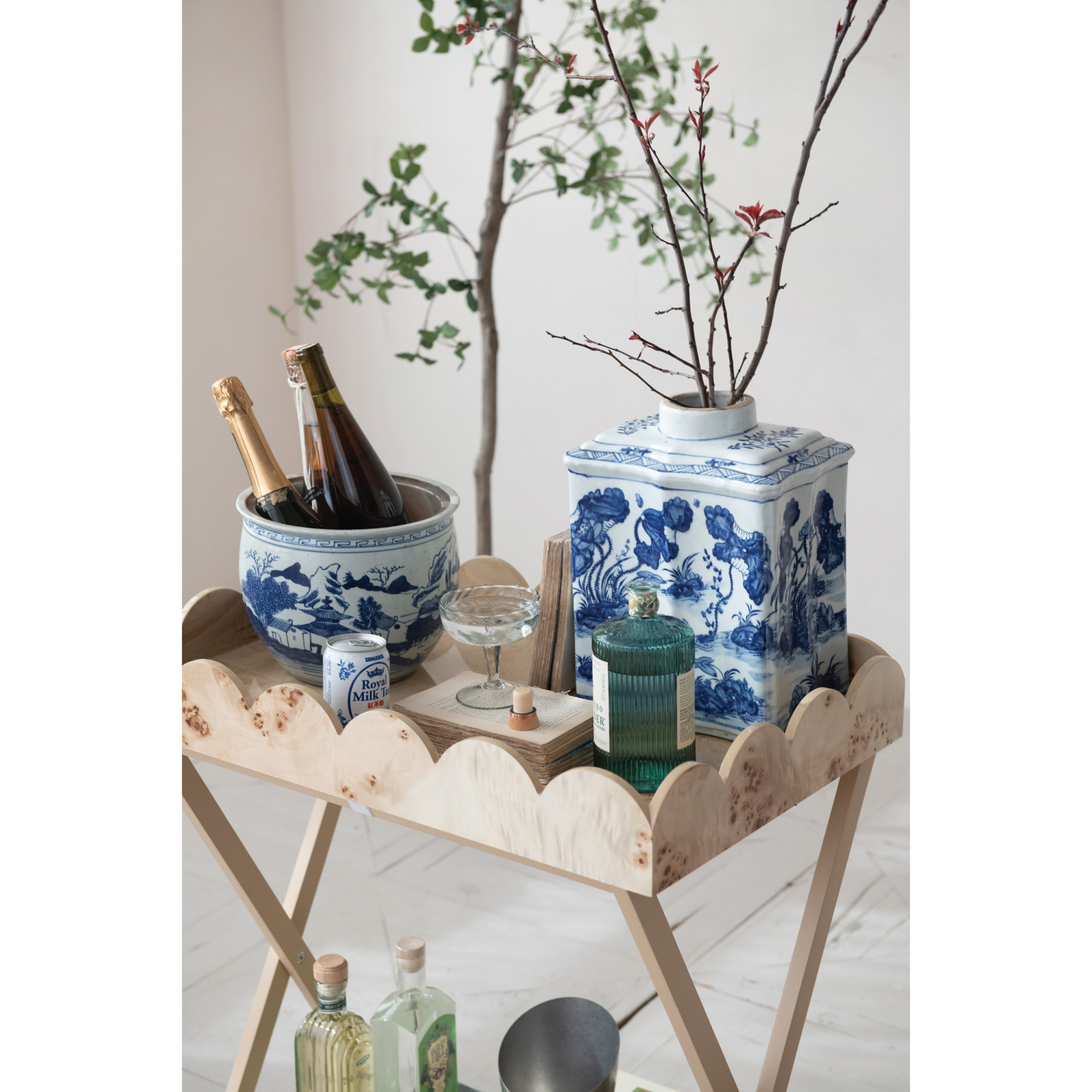 Catalog Name: 28"L x 18"W x 33-1/4"H MDF & Burl Wood Veneer Folding Tray Table w/ Removable Scalloped Tray, Natural, KD