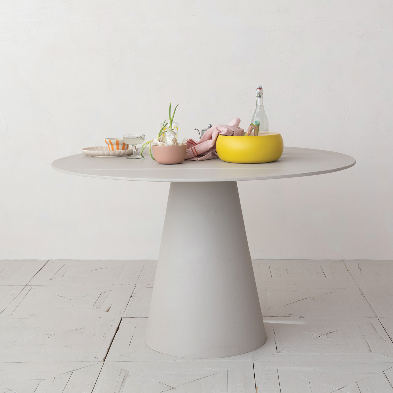 Catalog Name: 52-1/4" Round x 31-1/4"H Metal Indoor/Outdoor Dining Table, Matte Grey, KD, Truck Ship