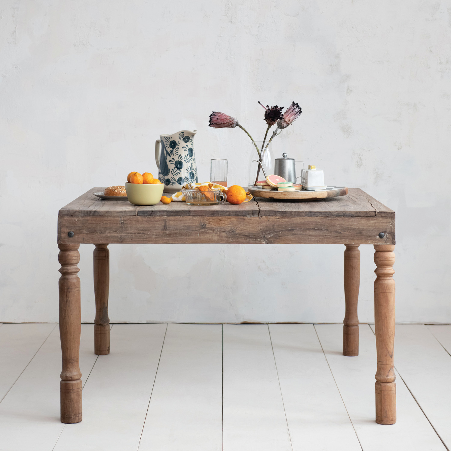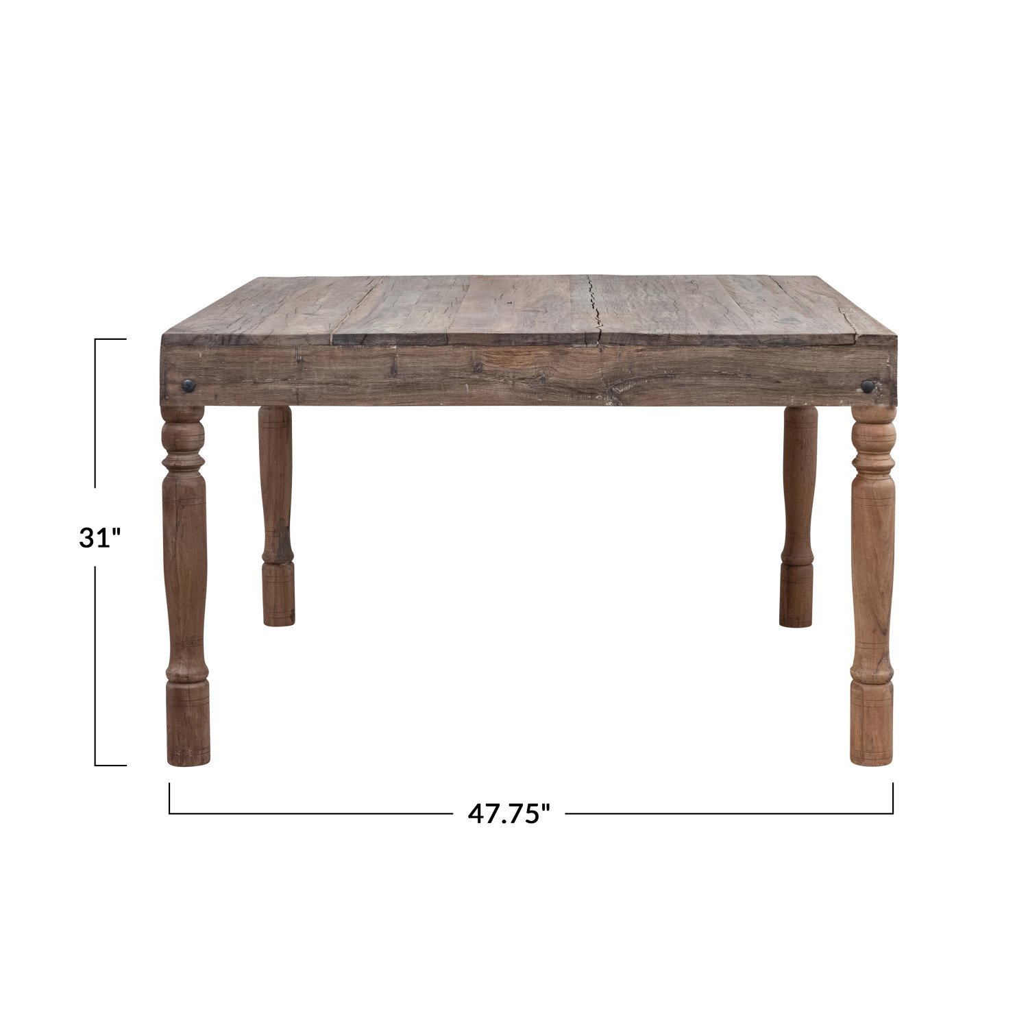 Catalog Name: 47-3/4" Square x 31"H Reclaimed Wood Dining Table w/ Turned Legs, Natural, KD, Truck Ship