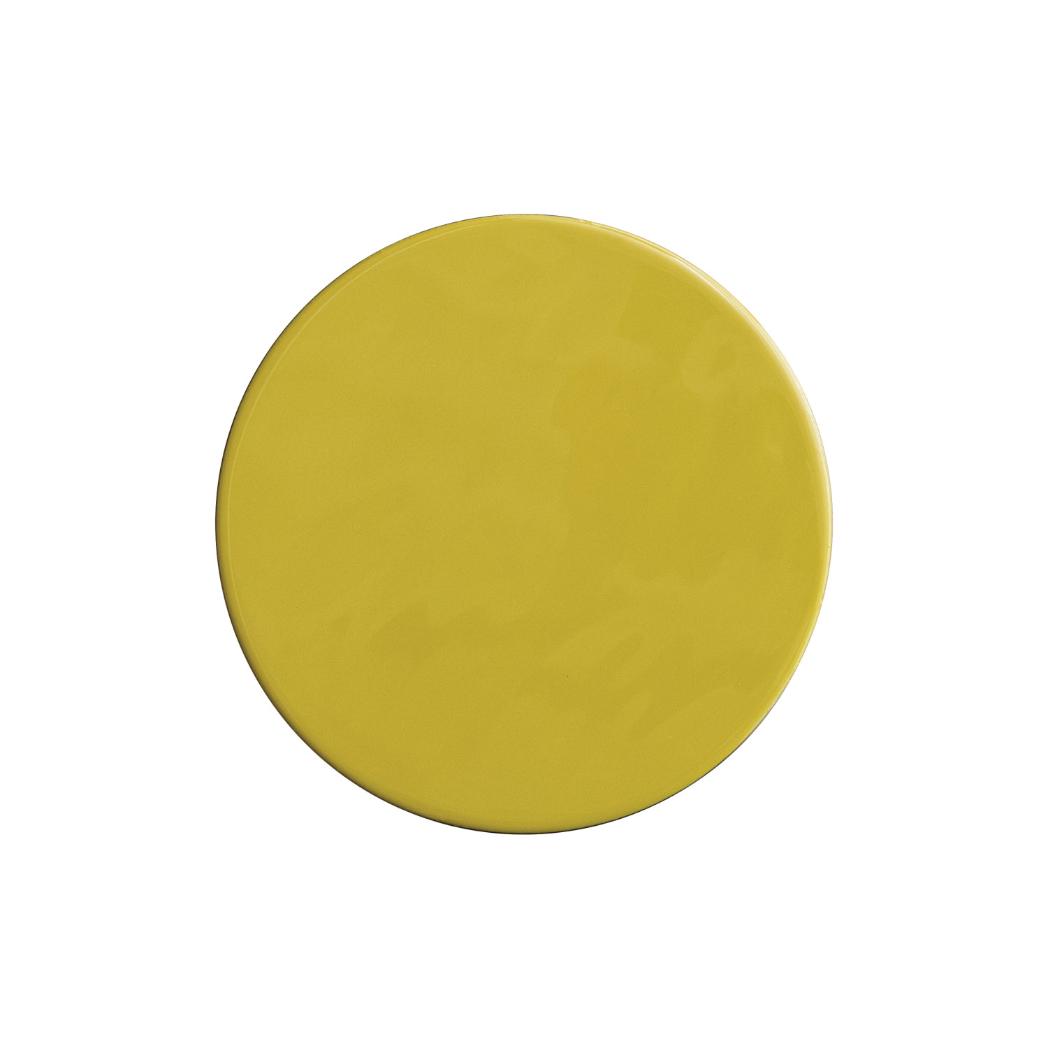 Catalog Name: 9" Round x 17-3/4"H - 25"H Enameled Aluminum Adjustable Table w/ Gold Electroplated Base, Mustard Color, KD