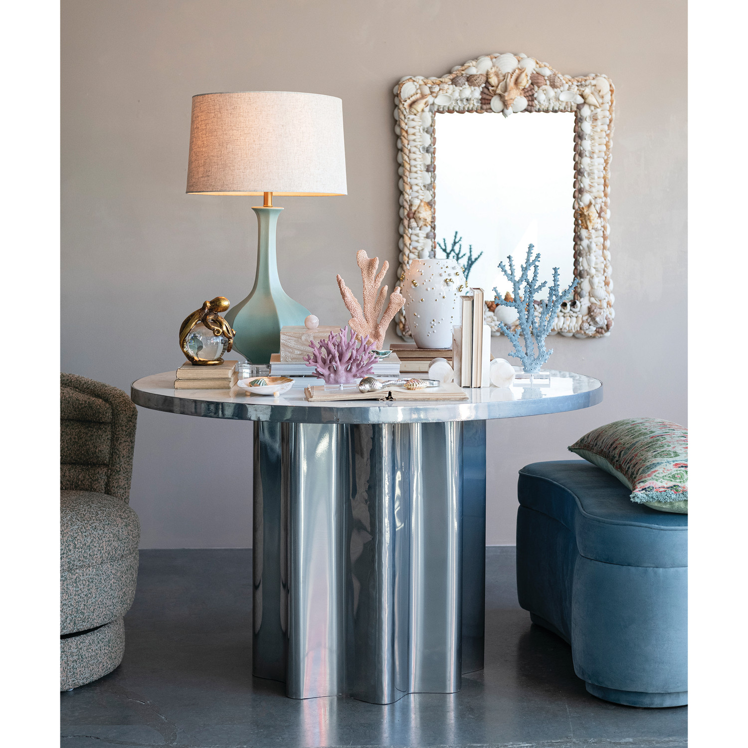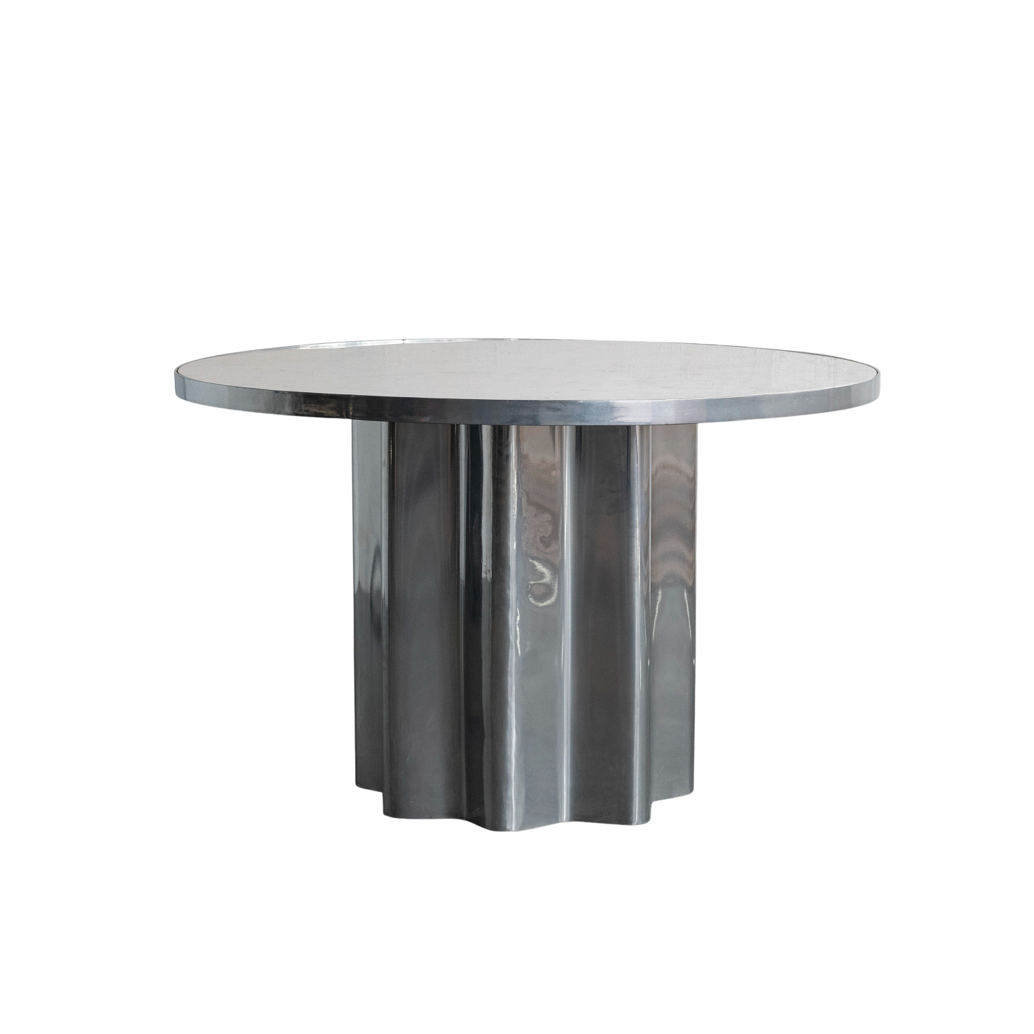 Marble Table with Fluted Metal Base, White & Chrome Finish, KD