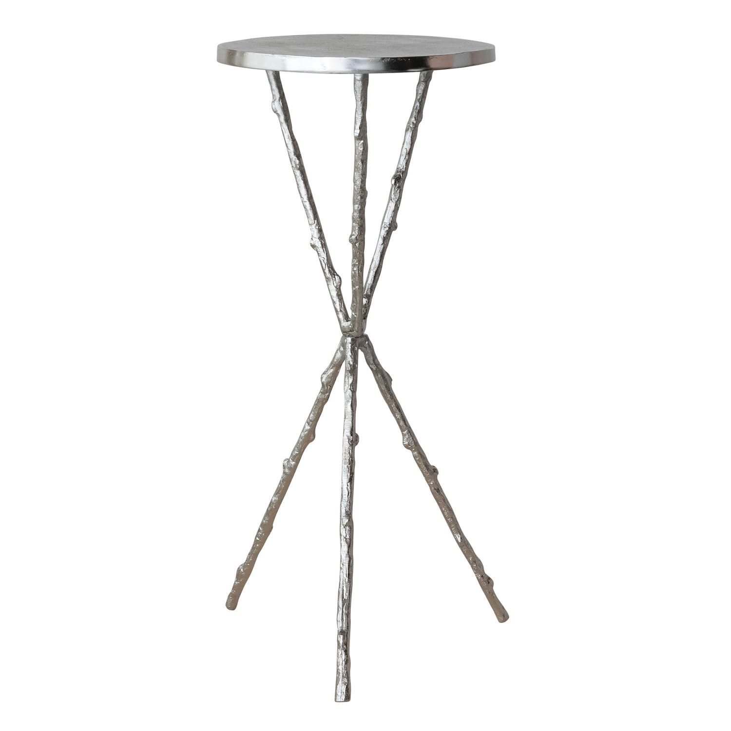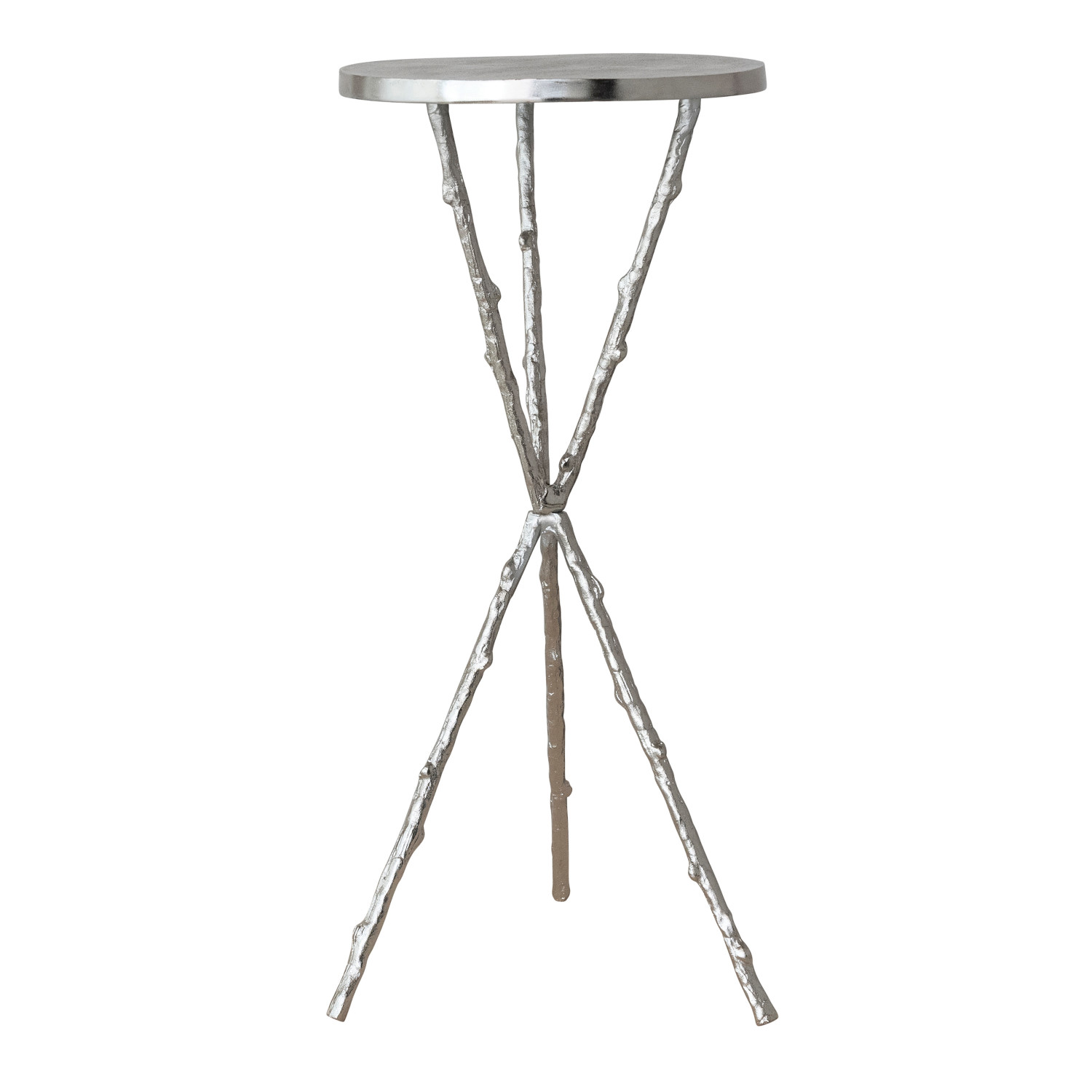 Catalog Name: 13" Round x 25"H Aluminum Tripod Table w/ Twig Shaped Legs, Nickel Finish, KD