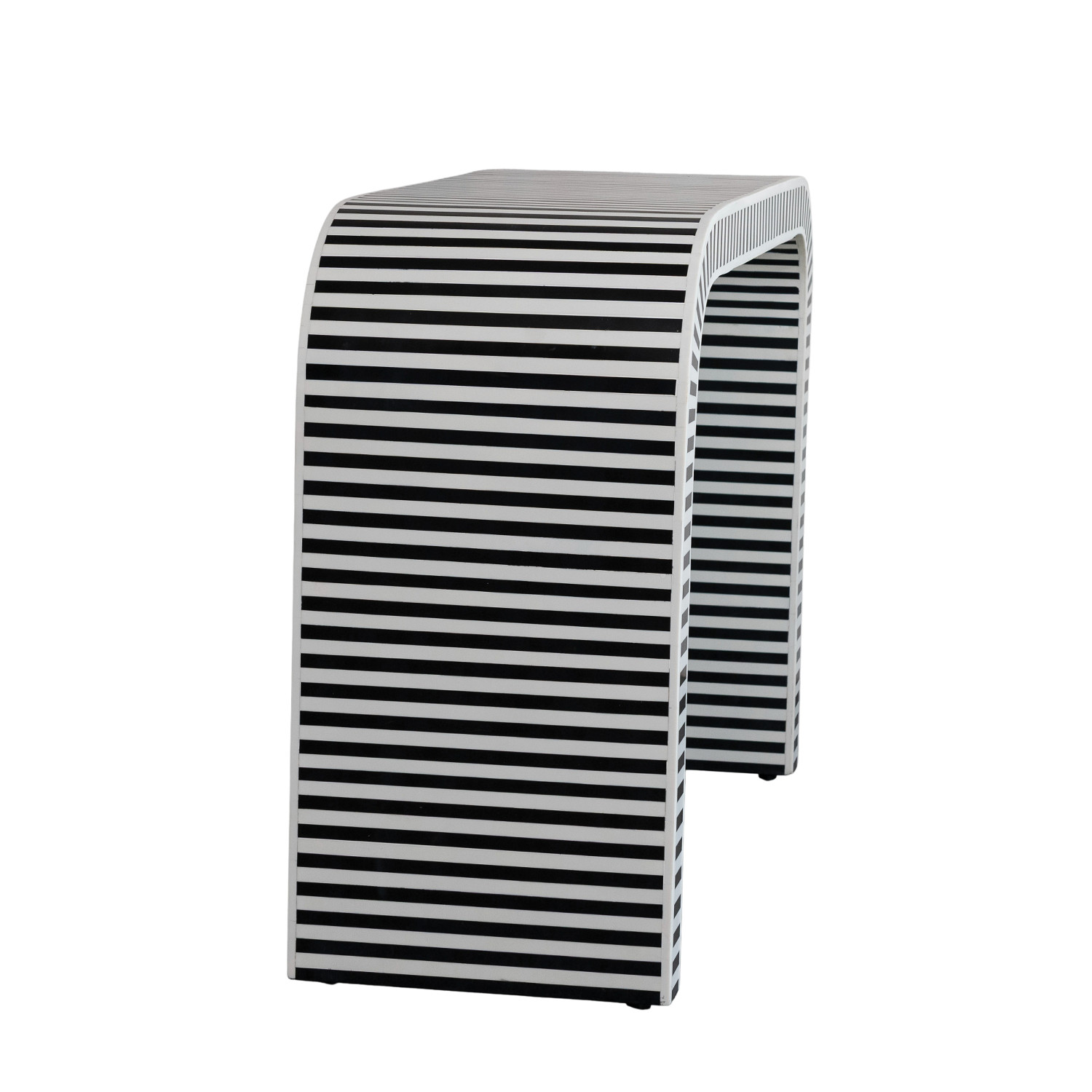 Catalog Name: 48"L x 16"W x 32"H MDF, Resin & Inlaid Bone Table w/ Stripes & Waterfall Edge, Black & Ivory Color, Truck Ship