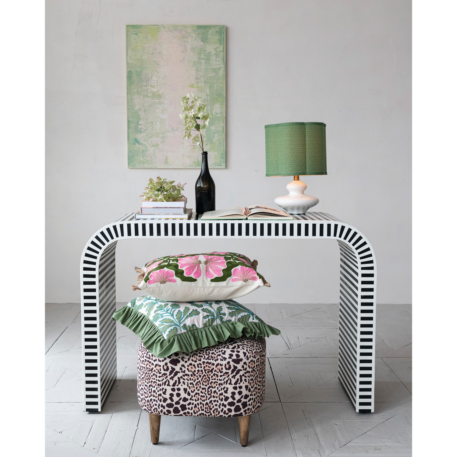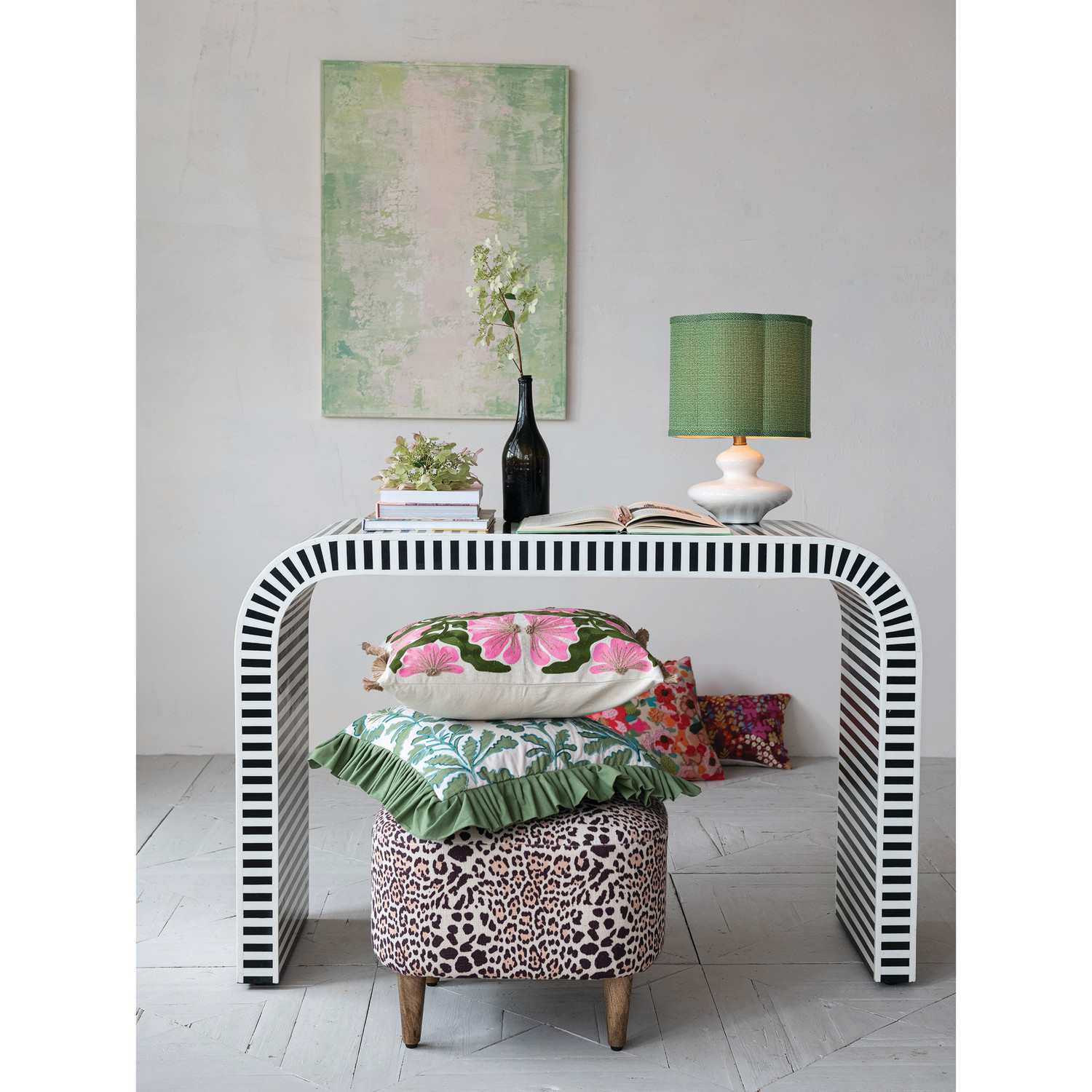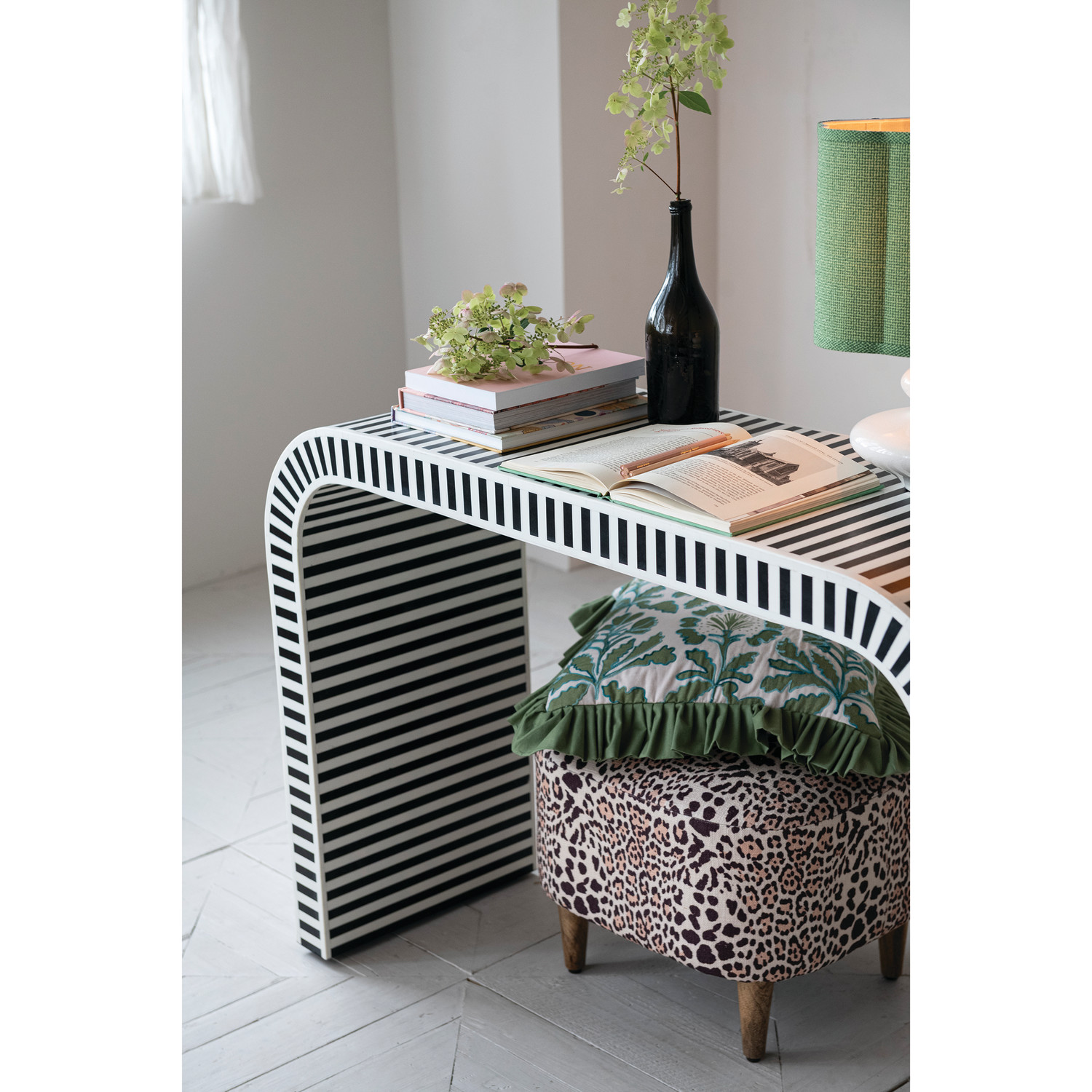 MDF, Resin & Inlaid Bone Table with Stripes & Waterfall Edge