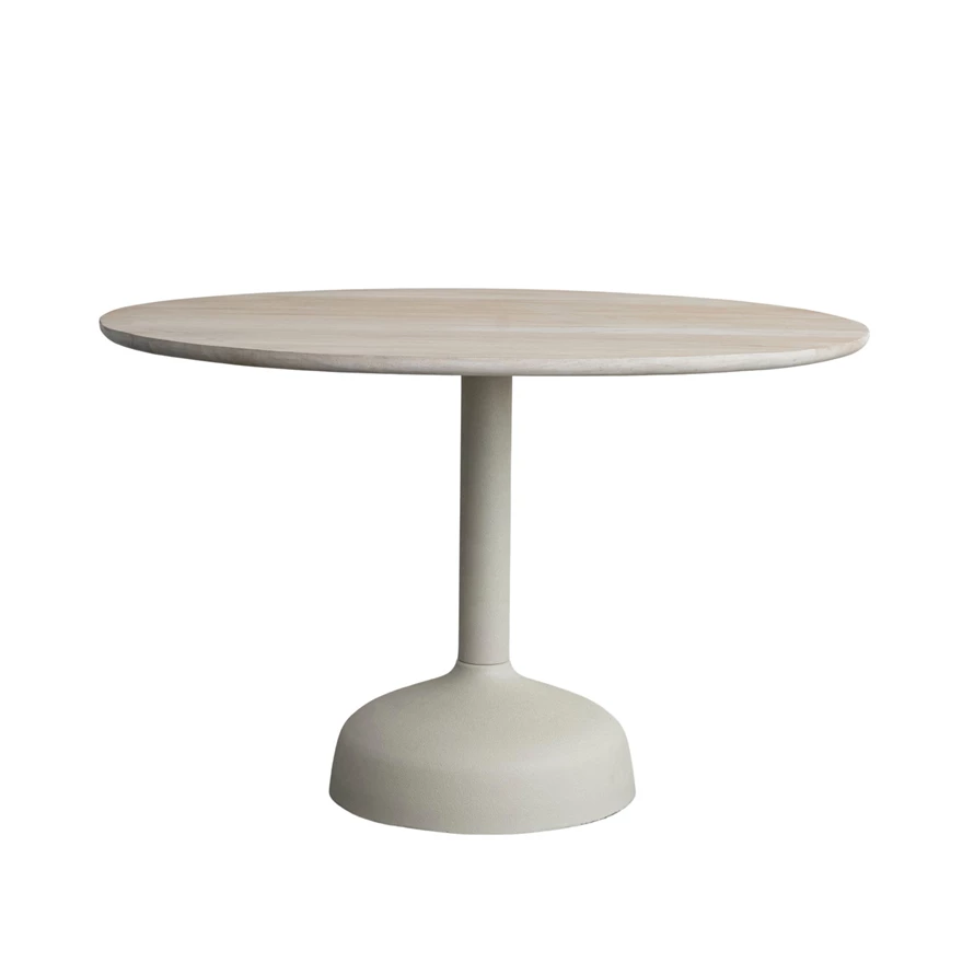 Catalog Name: 47-1/4" Round x 30"H Powder Coated Metal Table w/ Mango Wood Top, Cream Color & Bleached Finish, KD, Truck Ship