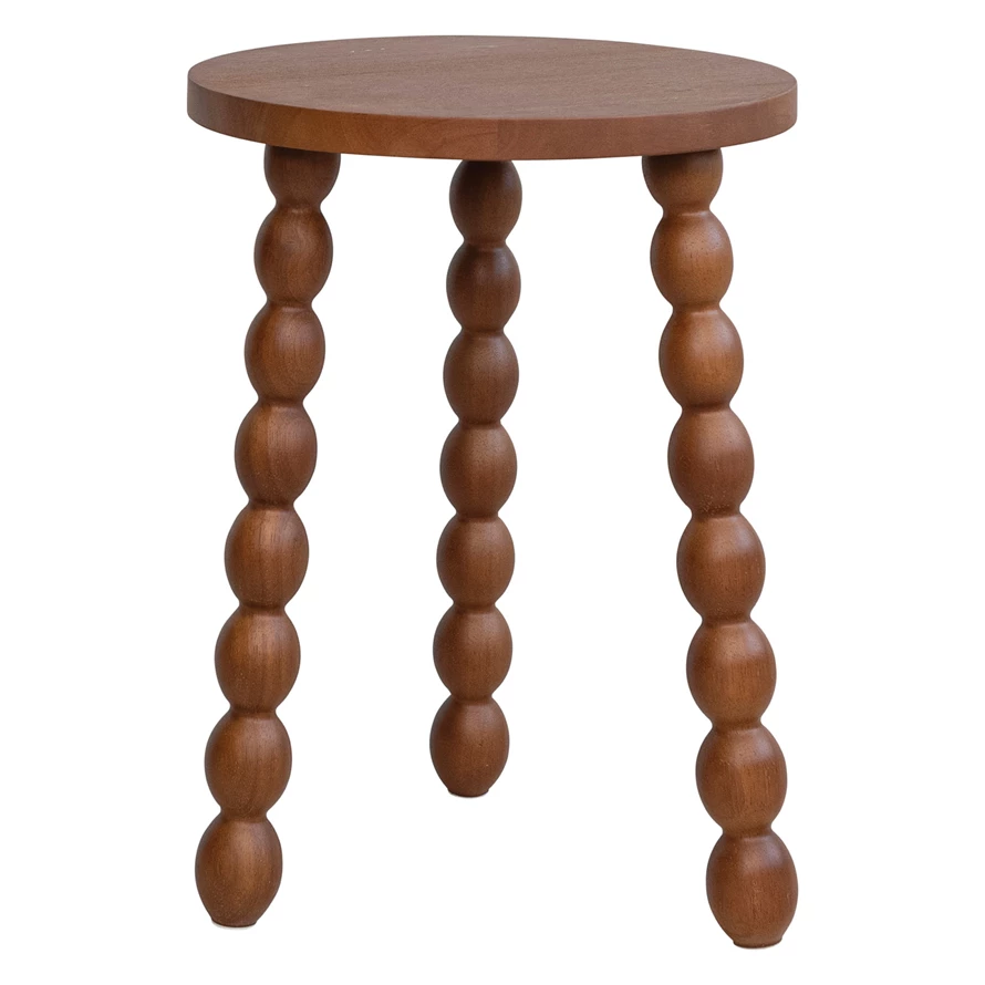 Catalog Name: 15" Round x 18"H Brushed Rubberwood Table w/ Turned Legs, Walnut Finish, KD