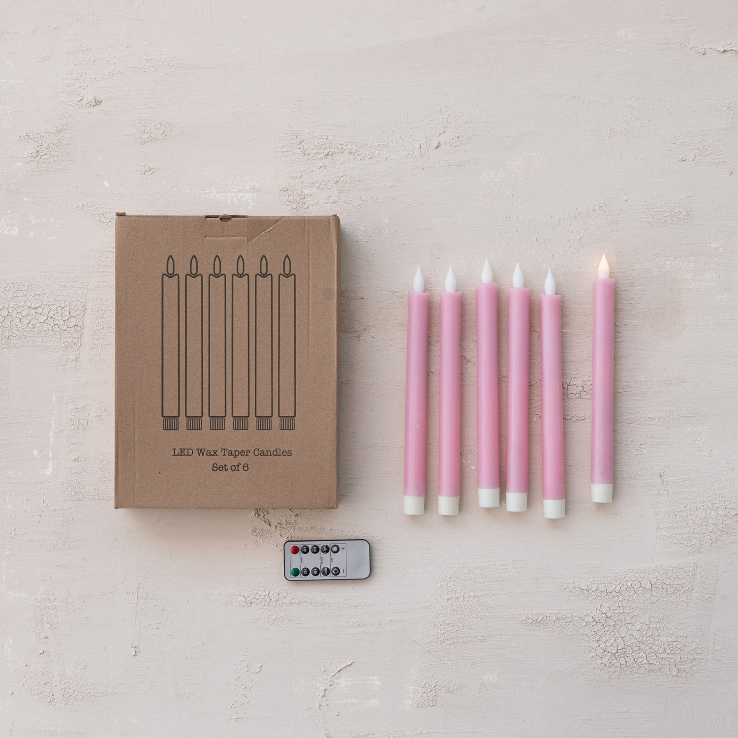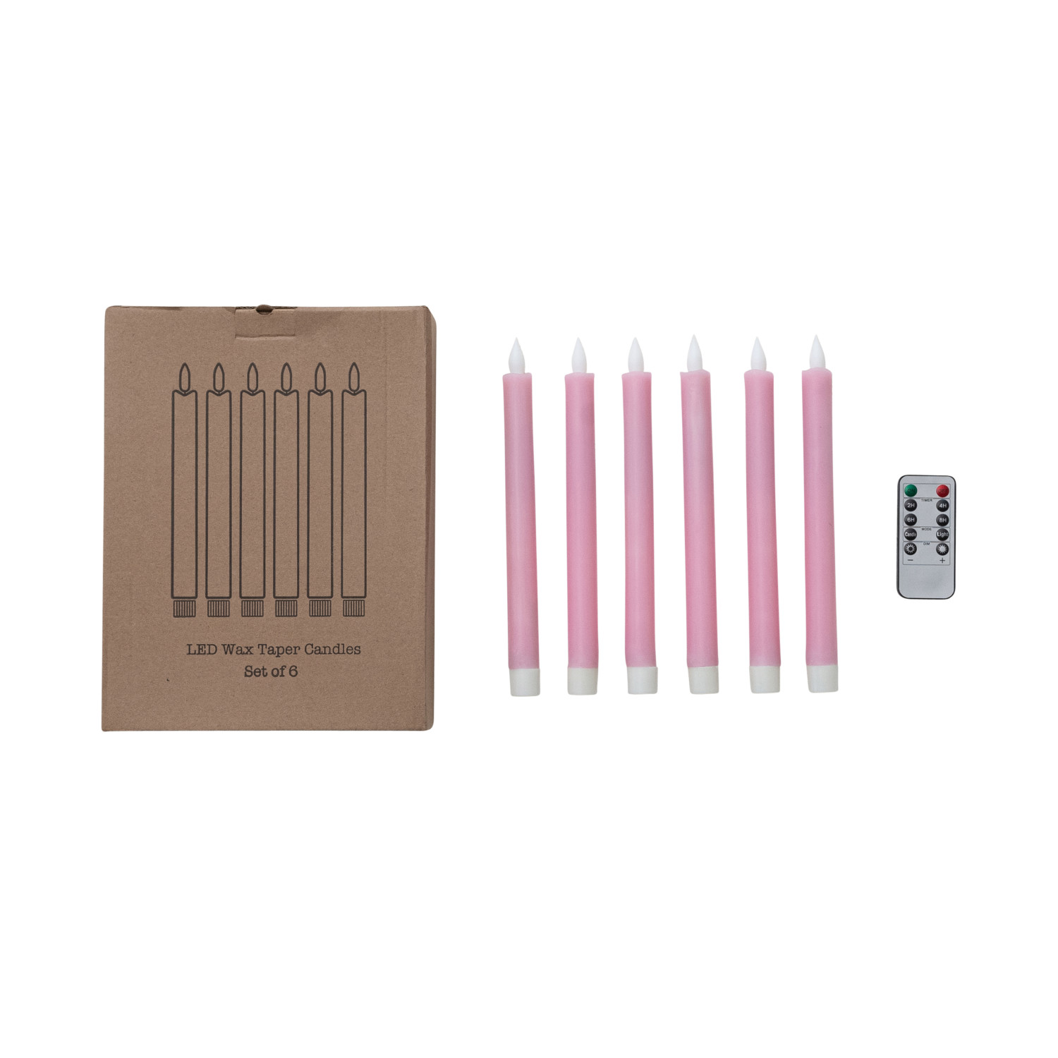 Catalog Name: 3/4" Round x 10"H Flameless LED Wax Taper Candles w/ 8 Hour Timer & Remote in Box, Pink, Set of 6 (Requires 2-AAA Batteries)