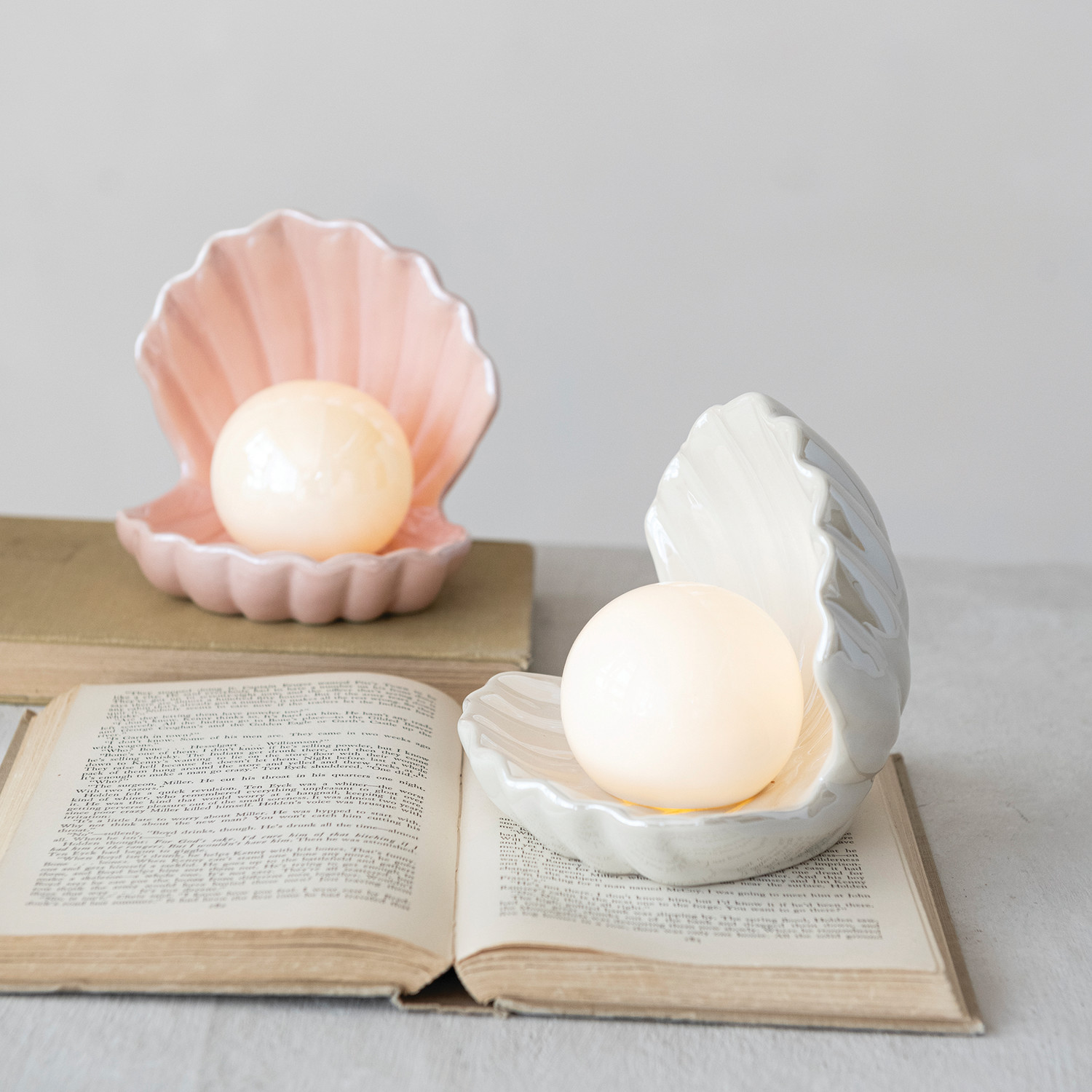 Stoneware Seashell with Removable LED Light, Set of 2, 2 Colors (Batteries Included)