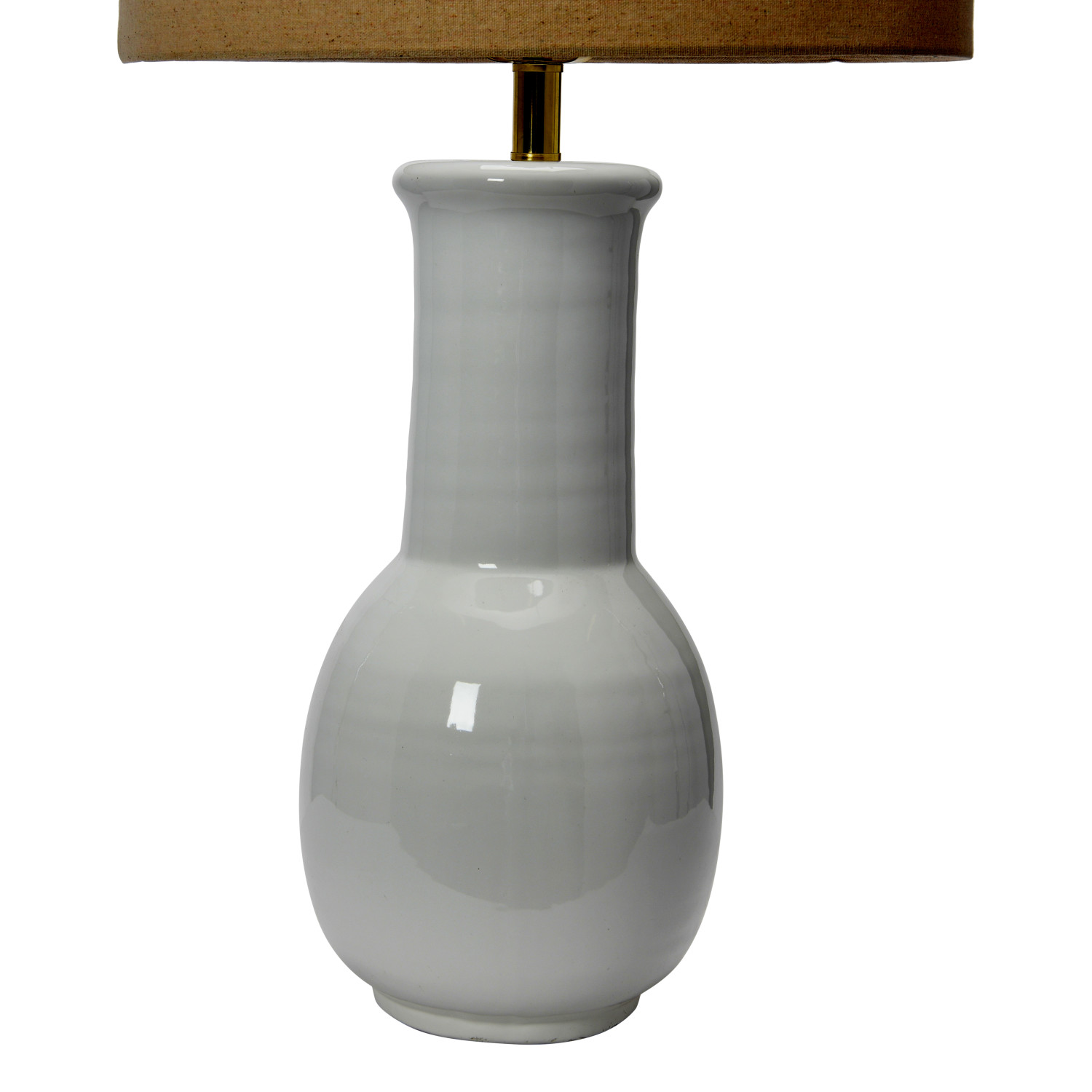 Catalog Name: 17" Round x 30"H Terra-cotta Table Lamp w/ Linen Shade, White (150 Watt Bulb Maximum)