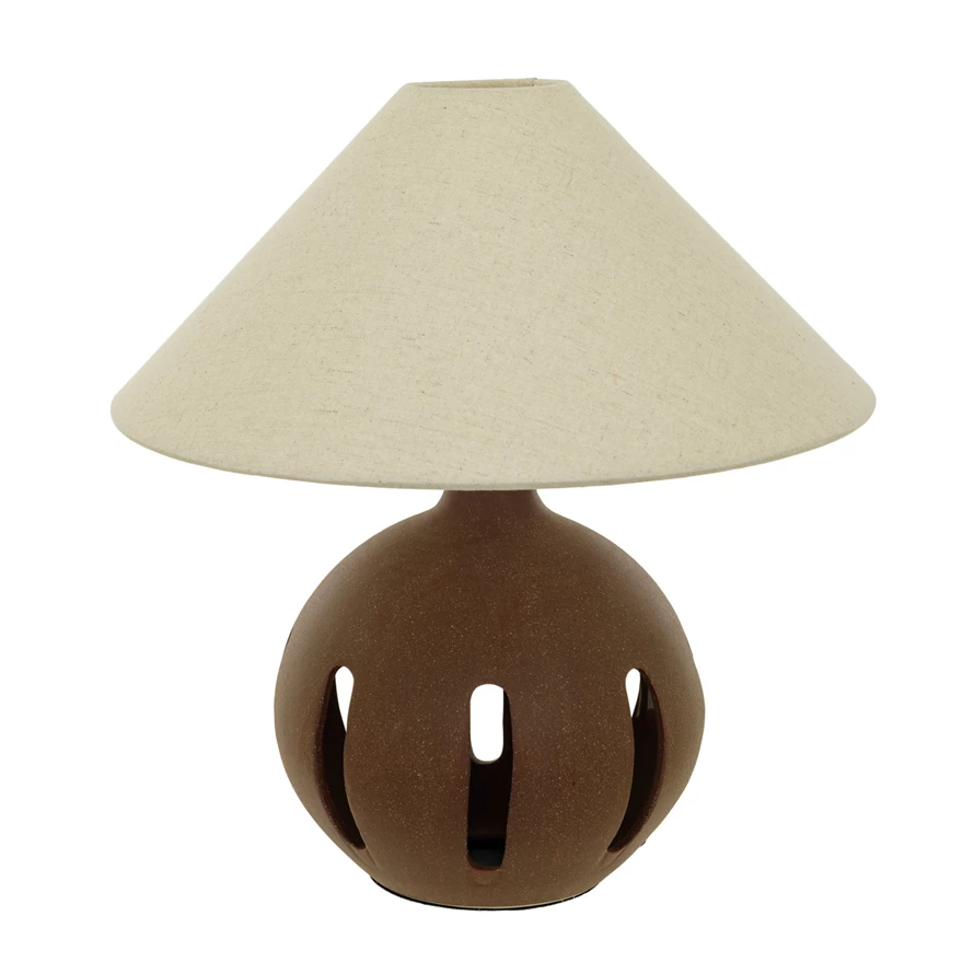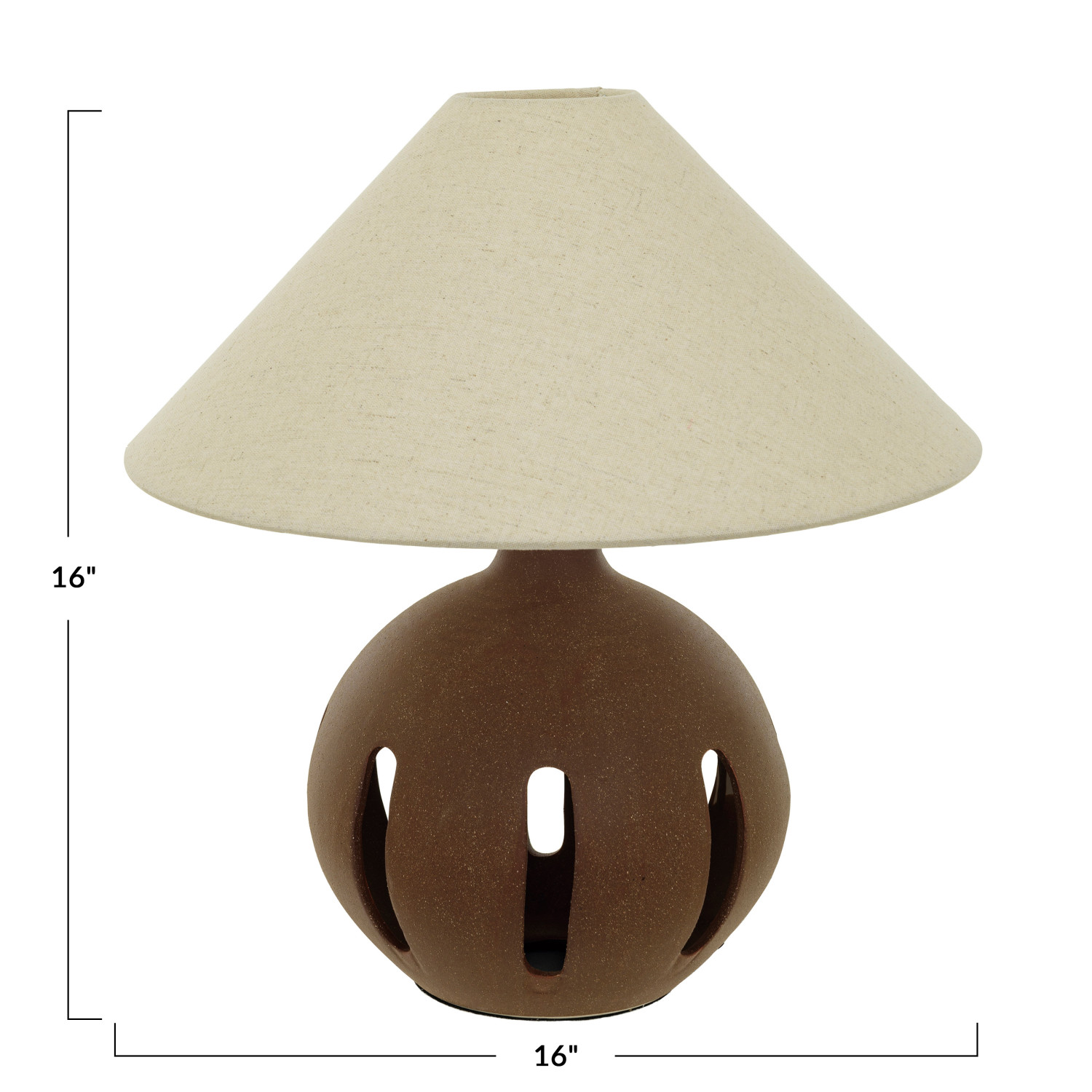 Catalog Name: 16" Round x 16"H Ceramic Table Lamp w/ Linen Shade & Cut-Outs, Matte Brown & Natural