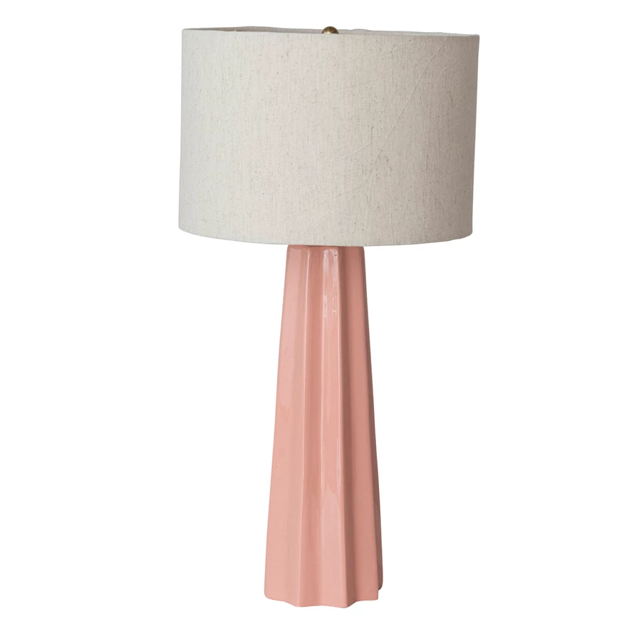 Enameled Aluminum Fluted Table Lamp with Linen Shade, Pink