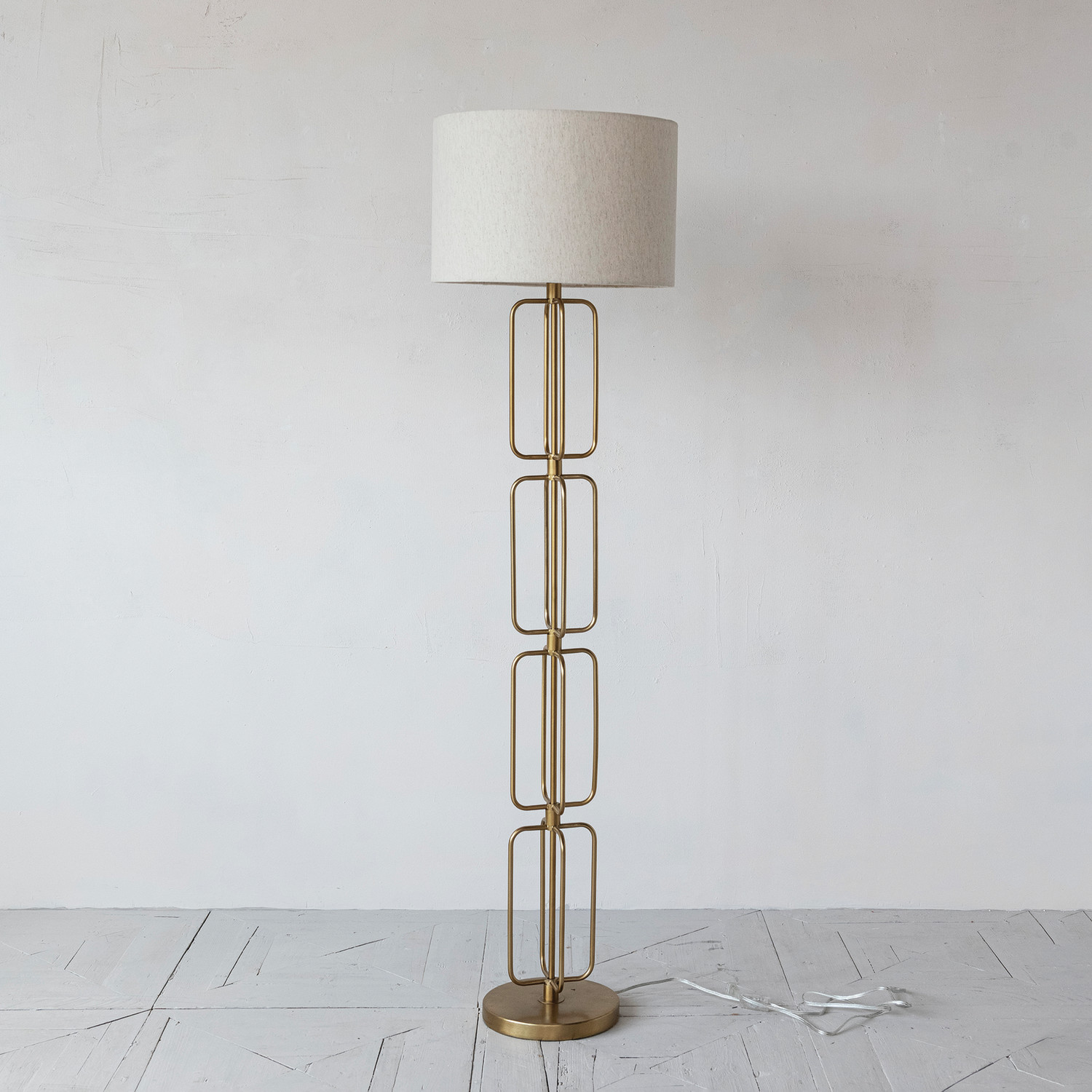 Catalog Name: 18" Round x 66"H Metal Wire Floor Lamp w/ Cotton Shade & Inline Switch, Gold Finish, Truck Ship