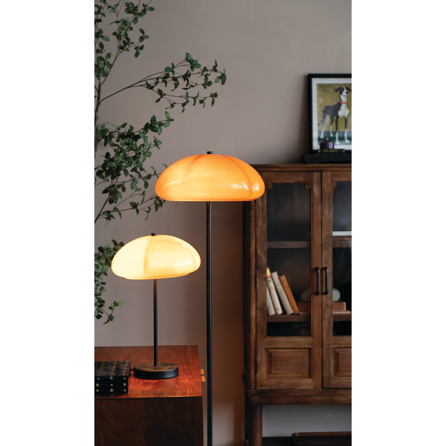 Metal Table Lamp with Opaque Glass Shade & Inline Switch, Black & Amber Color