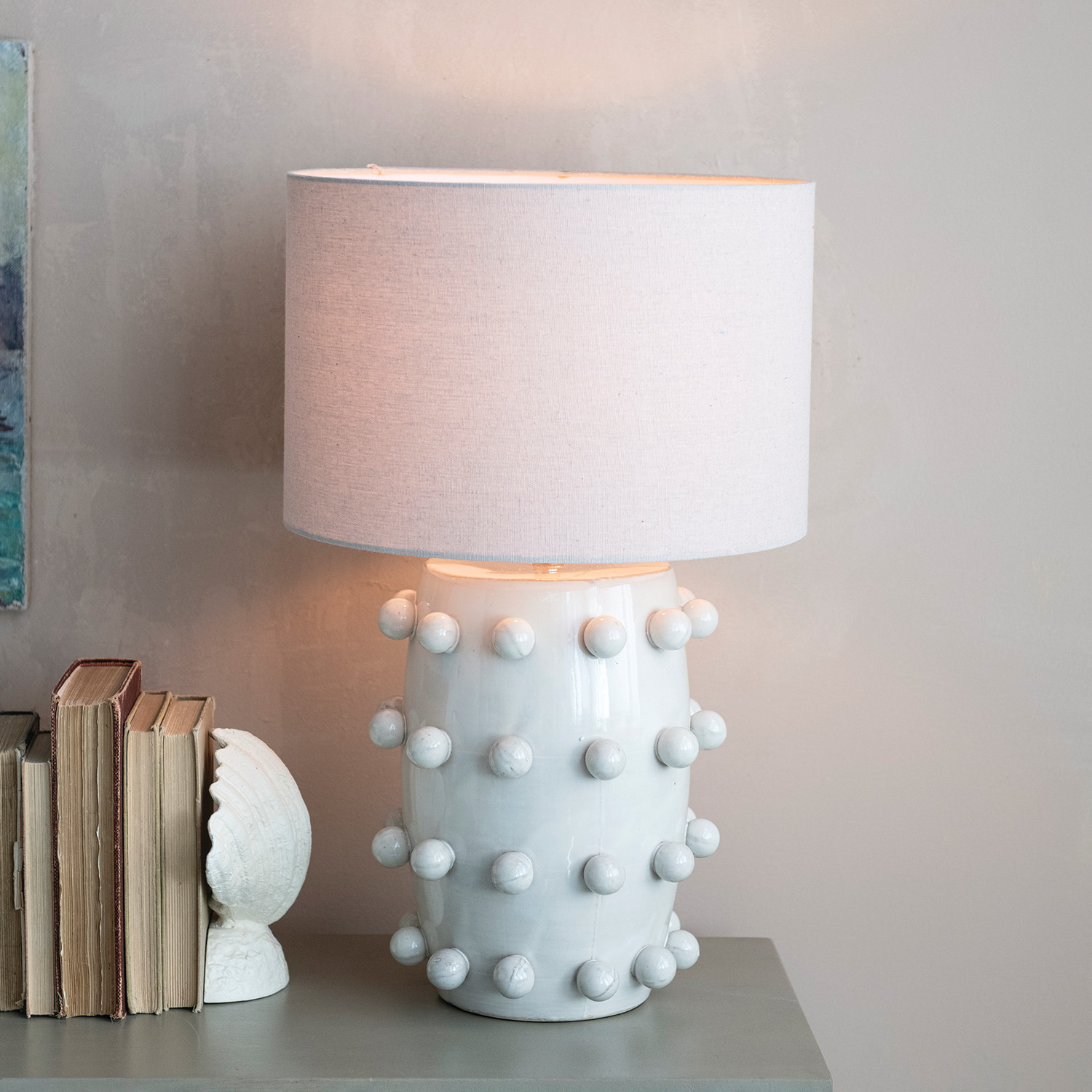 Stoneware Table Lamp with 3D Balls, Linen Shade & Inline Switch, White