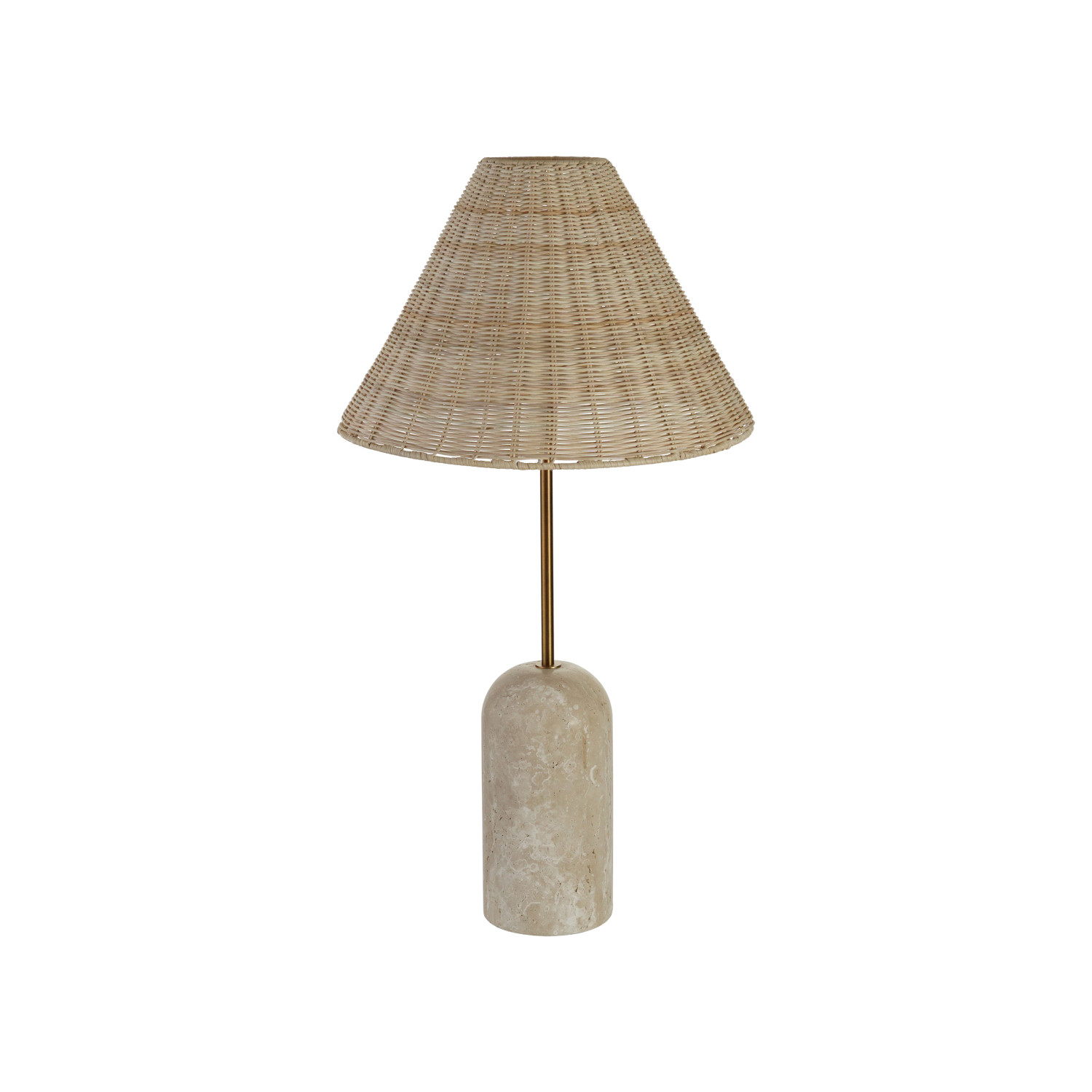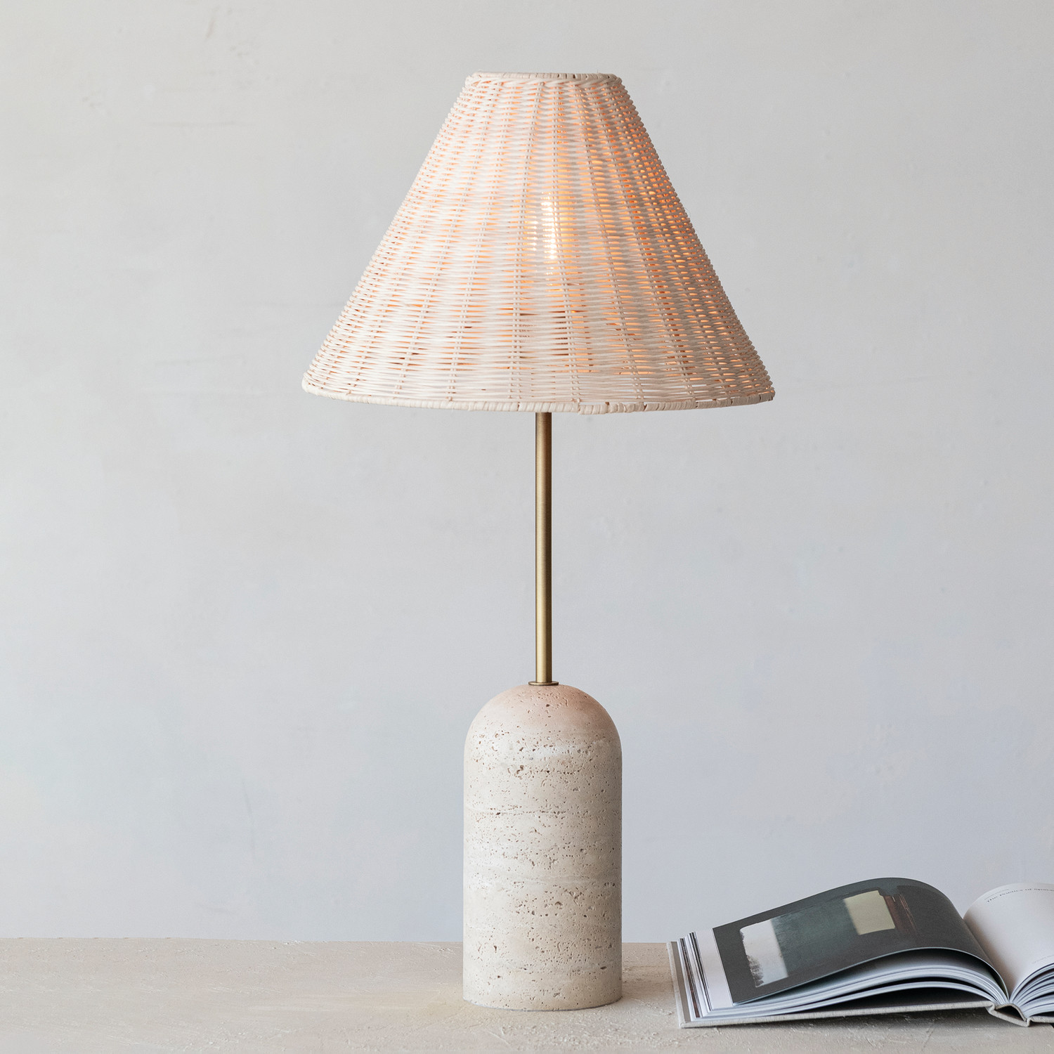 Metal & Travertine Table Lamp with Hand-Woven Shade & Inline Switch