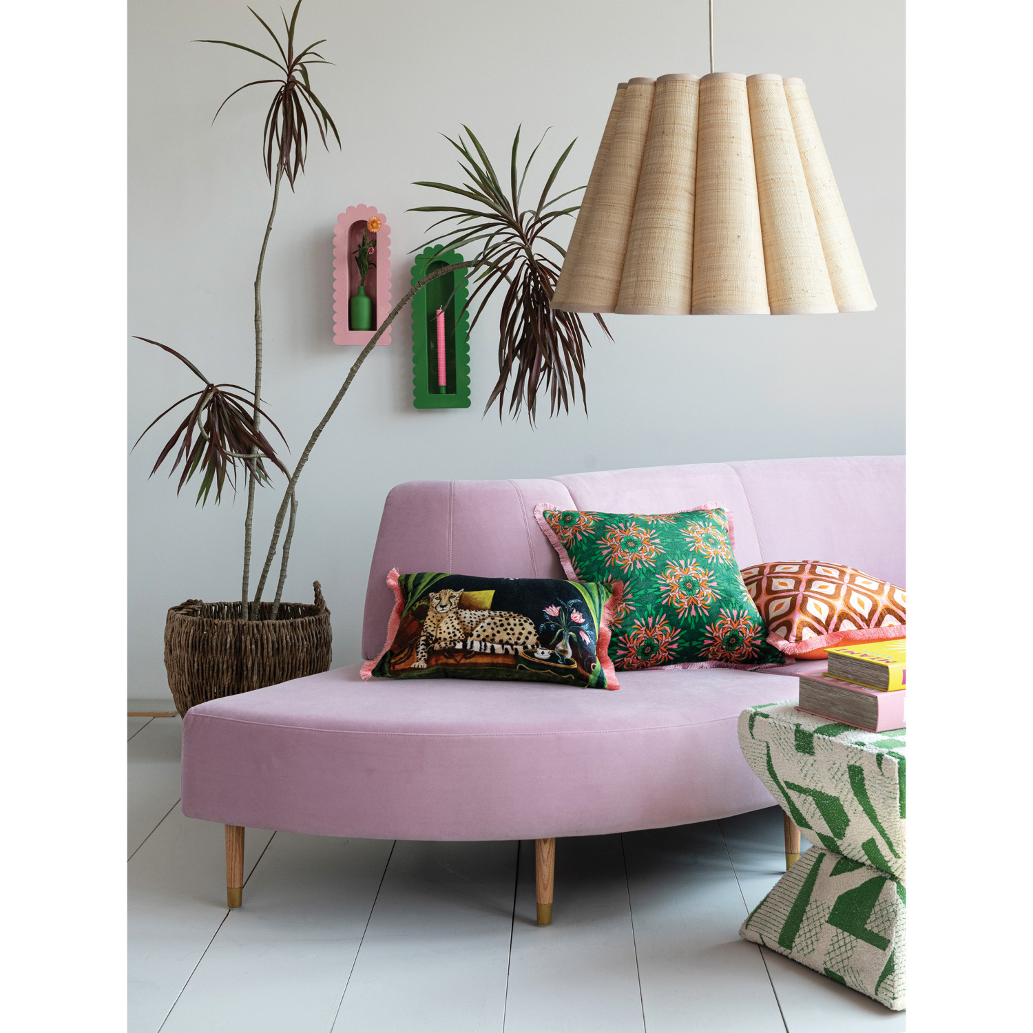 Raffia Scalloped Pendant Lamp with Linen Trim, 8' Fabric Cord
