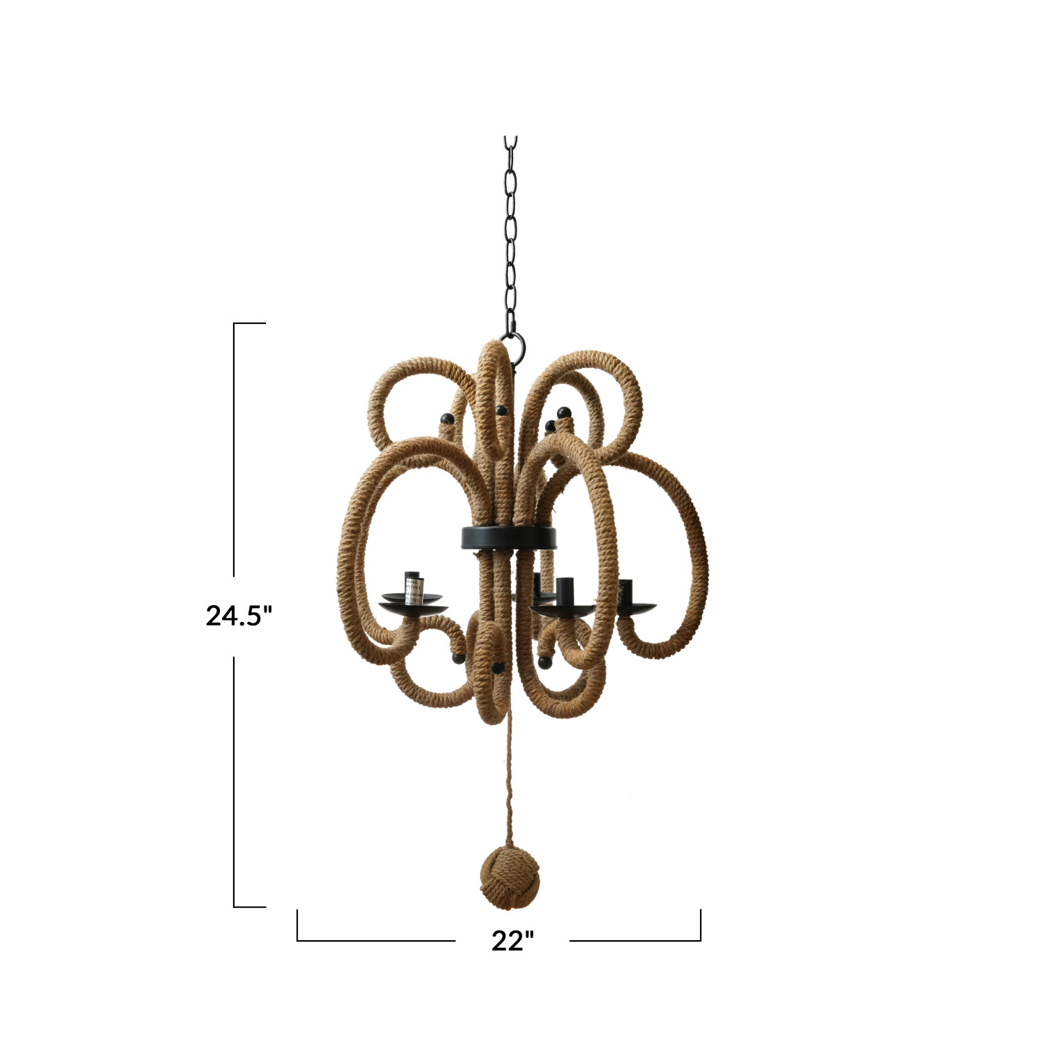 Catalog Name: 22" Round x 24-1/2"H Jute Wrapped Metal Chandelier w/ 5 Lights, 5' Chain & 5' Cord, Natural & Black, Truck Ship (Hardwire Only)