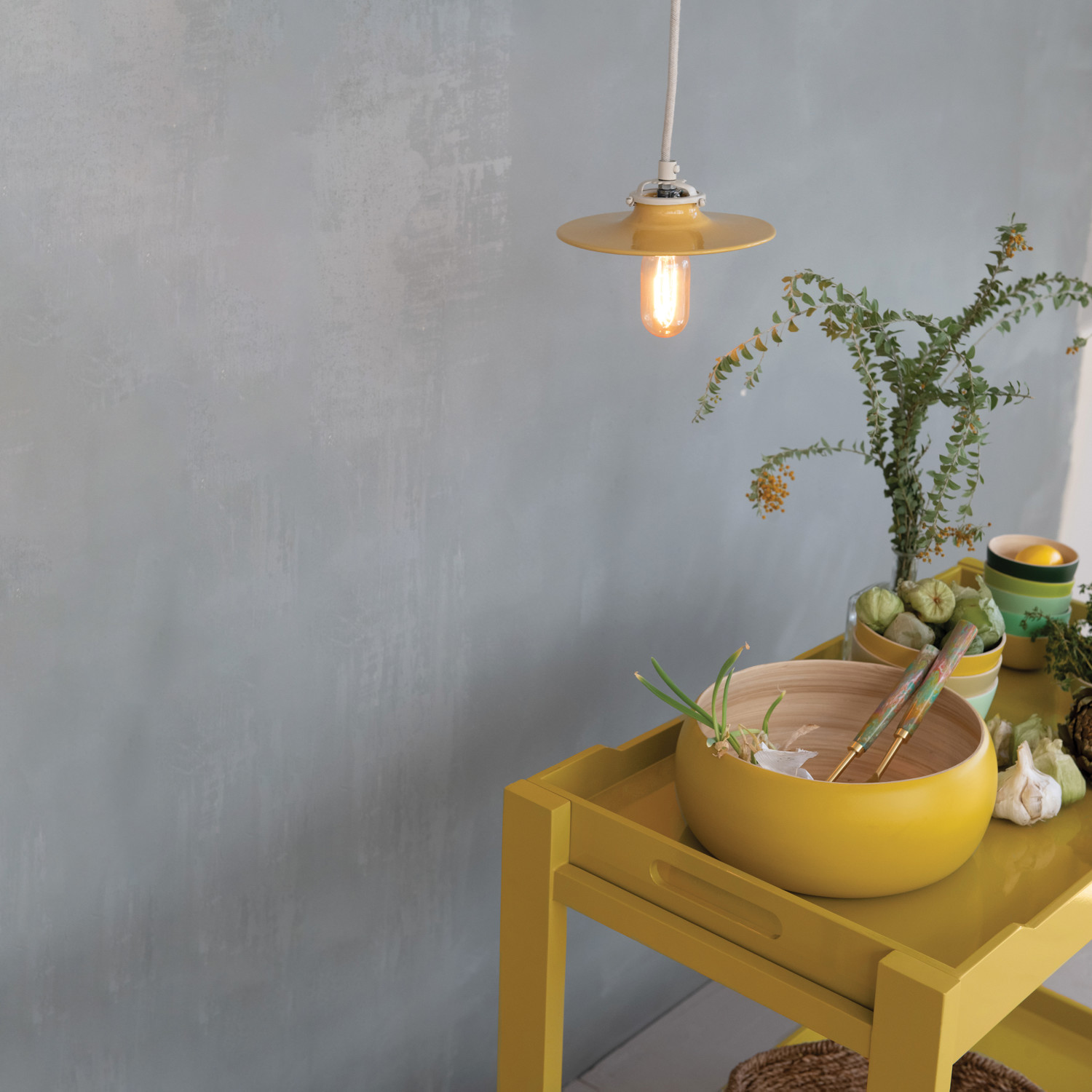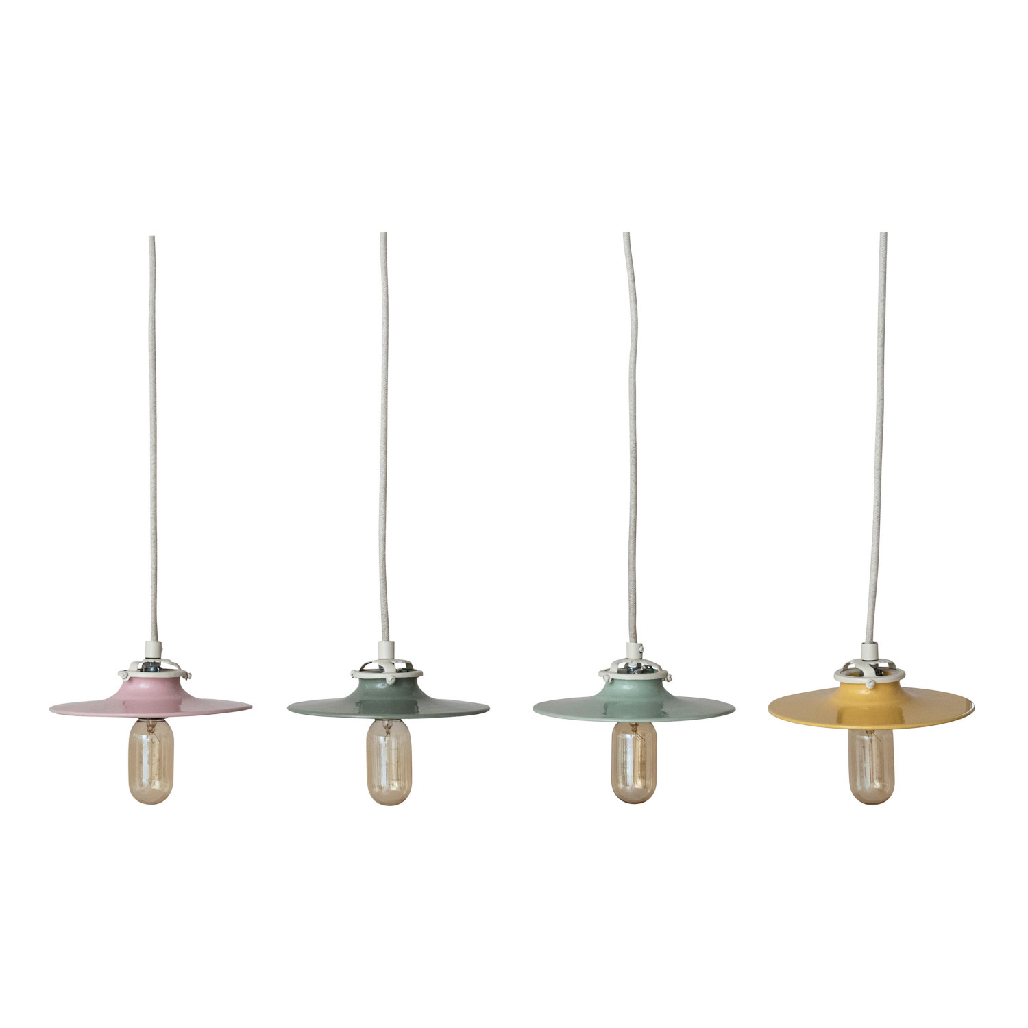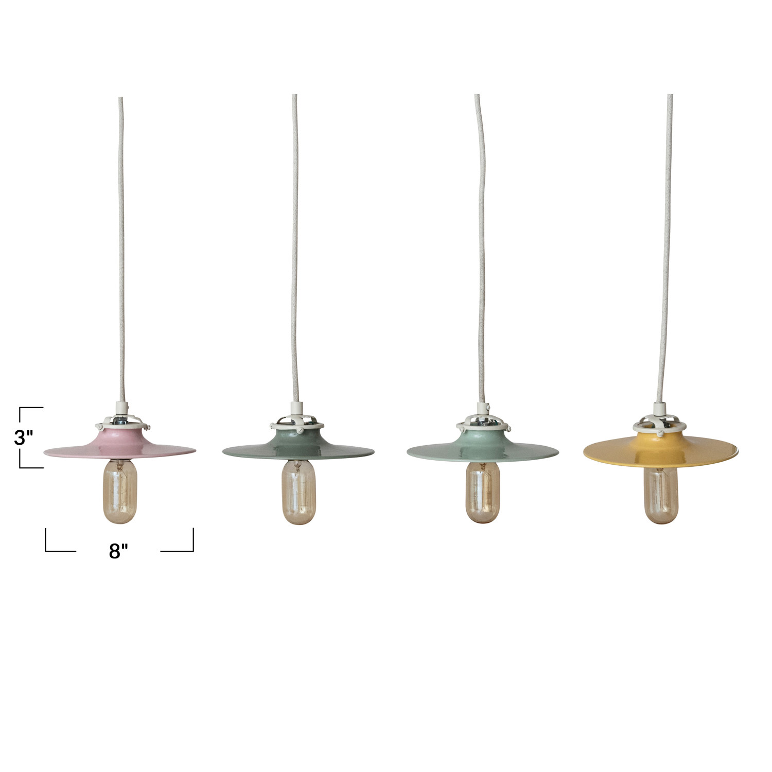 Catalog Name: 8" Round x 3"H Stoneware Pendant Lamp, 6' Fabric Cord, 4 Colors (Hardwire Only)