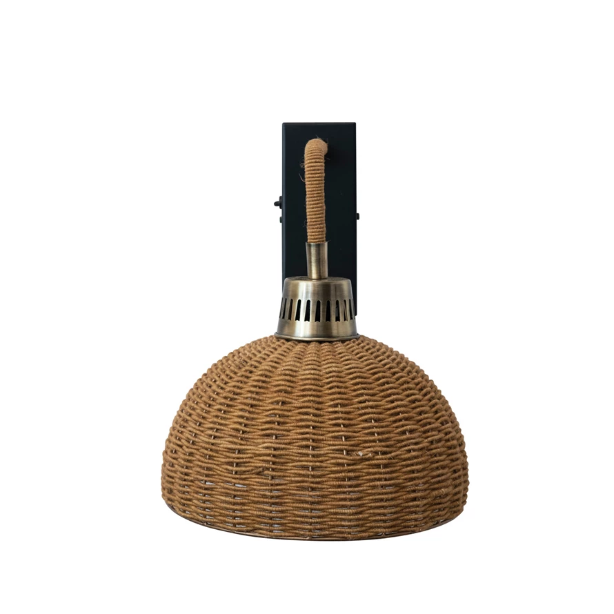 Catalog Name: 15-3/4"W x 11-3/4"D x 15-1/4"H Jute Wrapped Metal Wall Sconce w/ Inline Switch, Black & Natural
