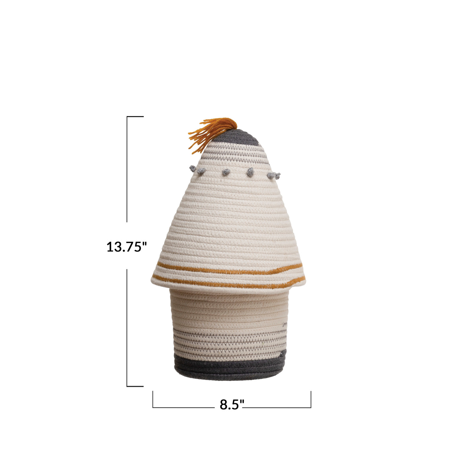 Catalog Name: 8-1/2" Round x 13-3/4"H Cotton Rope Basket w/ Lid & Embroidery, Grey & Mustard Color