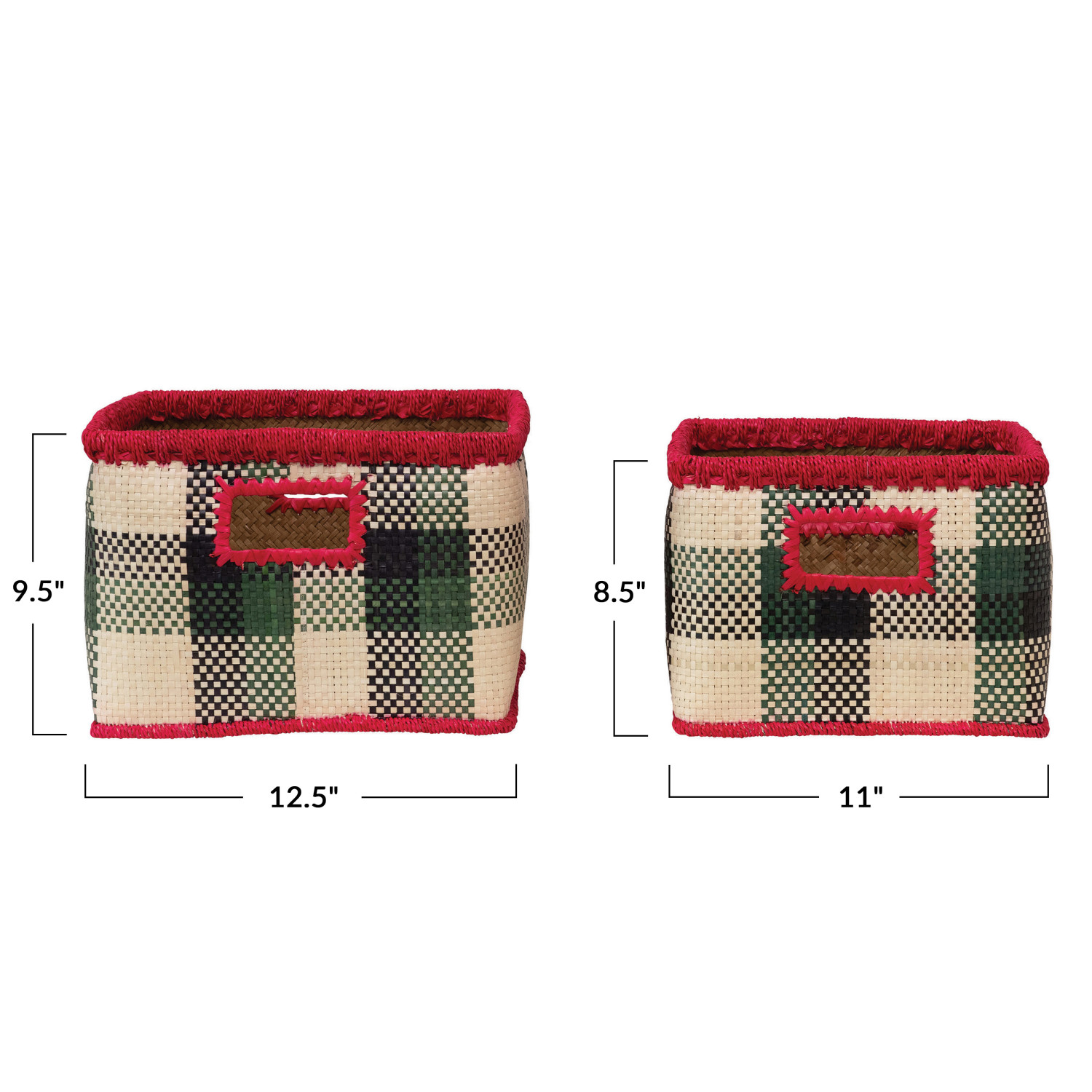 Hand-Woven Baskets with Check Pattern, Set of 2