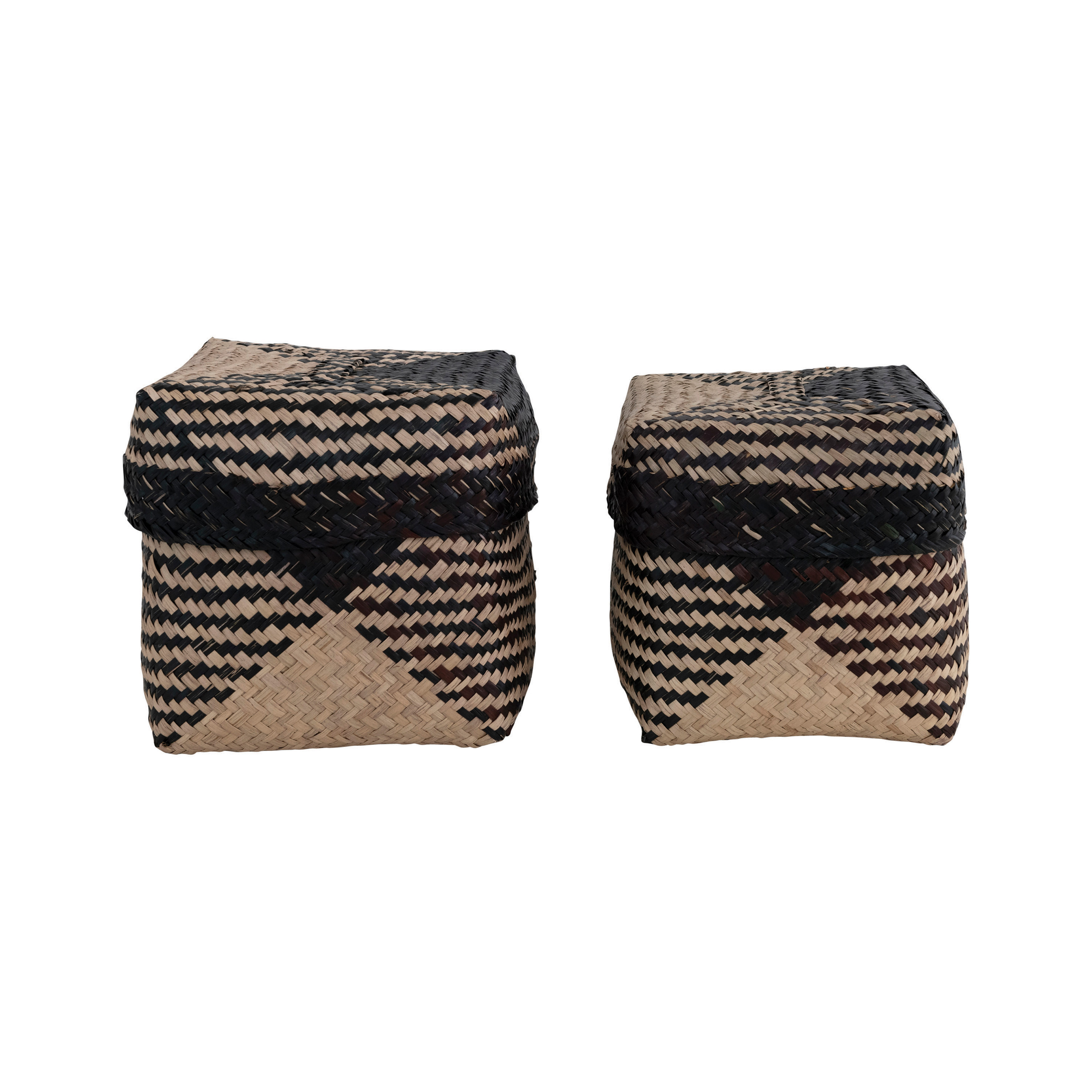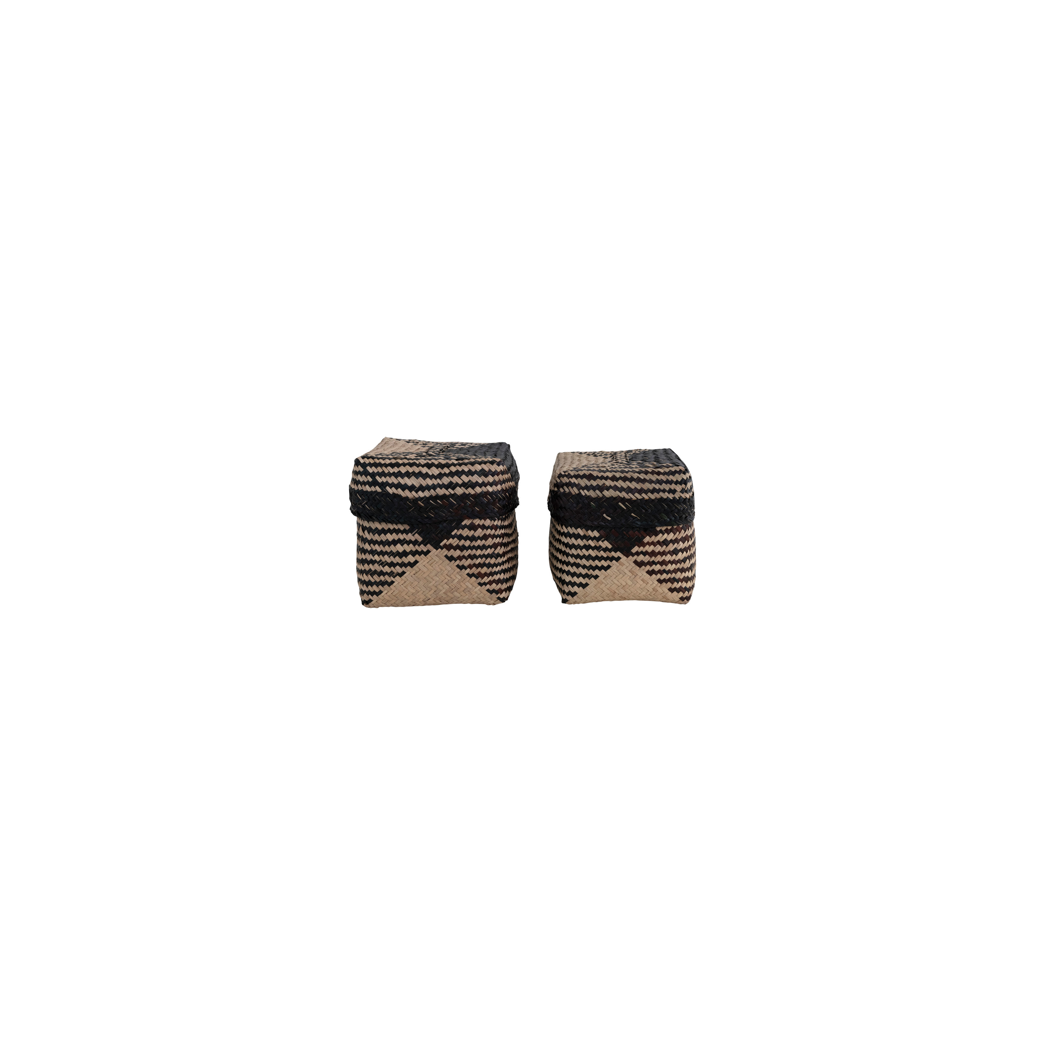 Catalog Name: 9" Square x 9"H & 8" Square x 8"H Hand-Woven Seagrass Boxes, Natural & Black, Set of 2