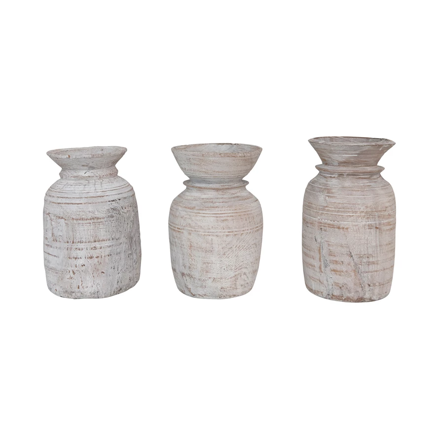 Catalog Name: Approximately 8" Round x 13"H Found Decorative Wood Jug, Whitewashed (Each One Will Vary)