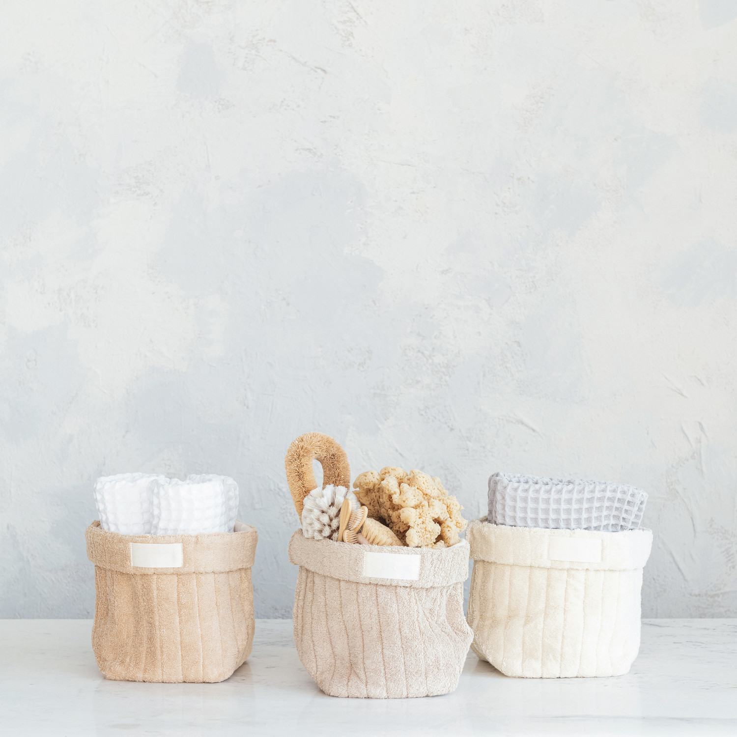 Quilted Cotton Terry Cloth Folding Baskets, 3 Colors