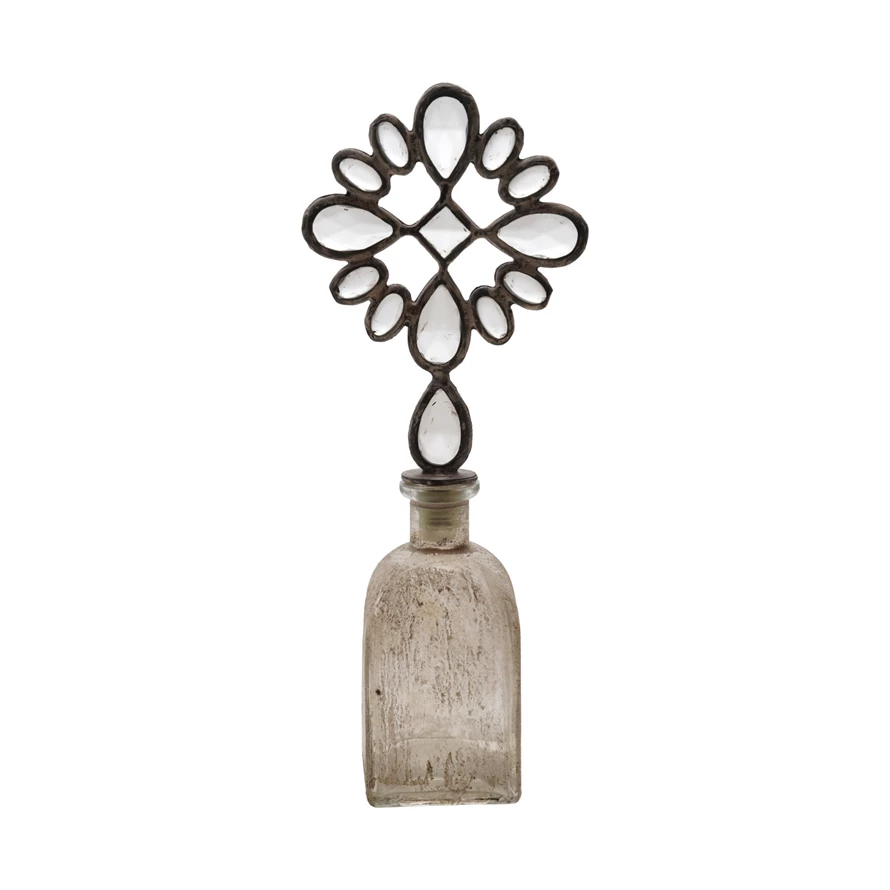Decorative Glass Bottle with Zinc Alloy Stopper, Distressed Finish
