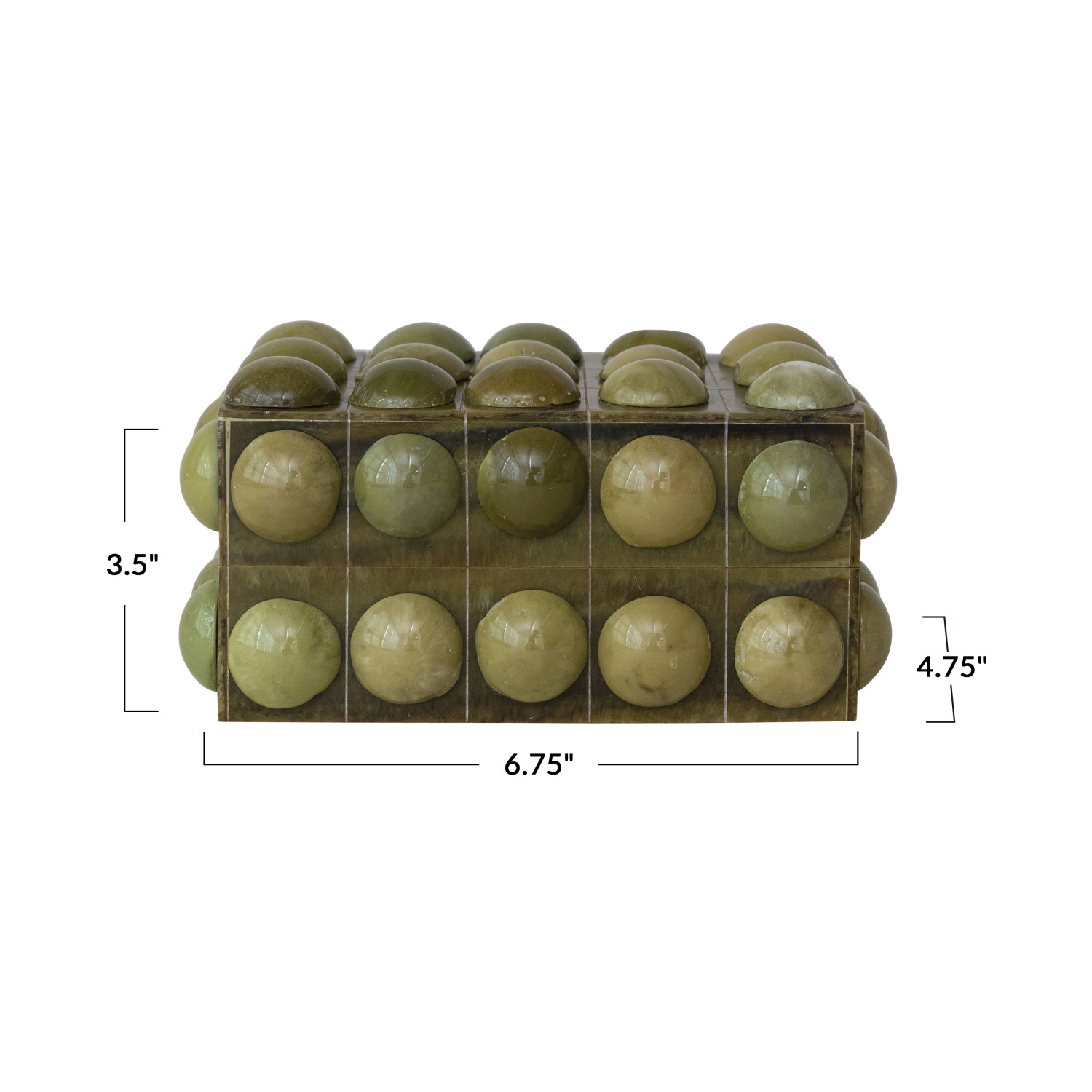 Catalog Name: 6-3/4"L x 4-3/4"W x 3-1/2"H Marbled Resin & MDF Hobnail Box, Green