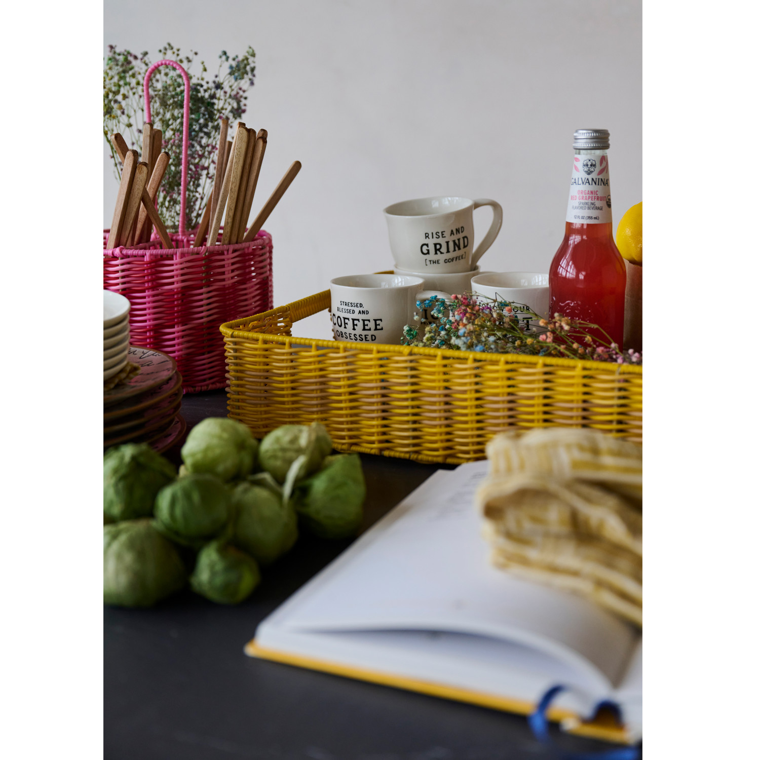 Woven Plastic Caddy w/ Handle & 4 Sections, Pink & Red