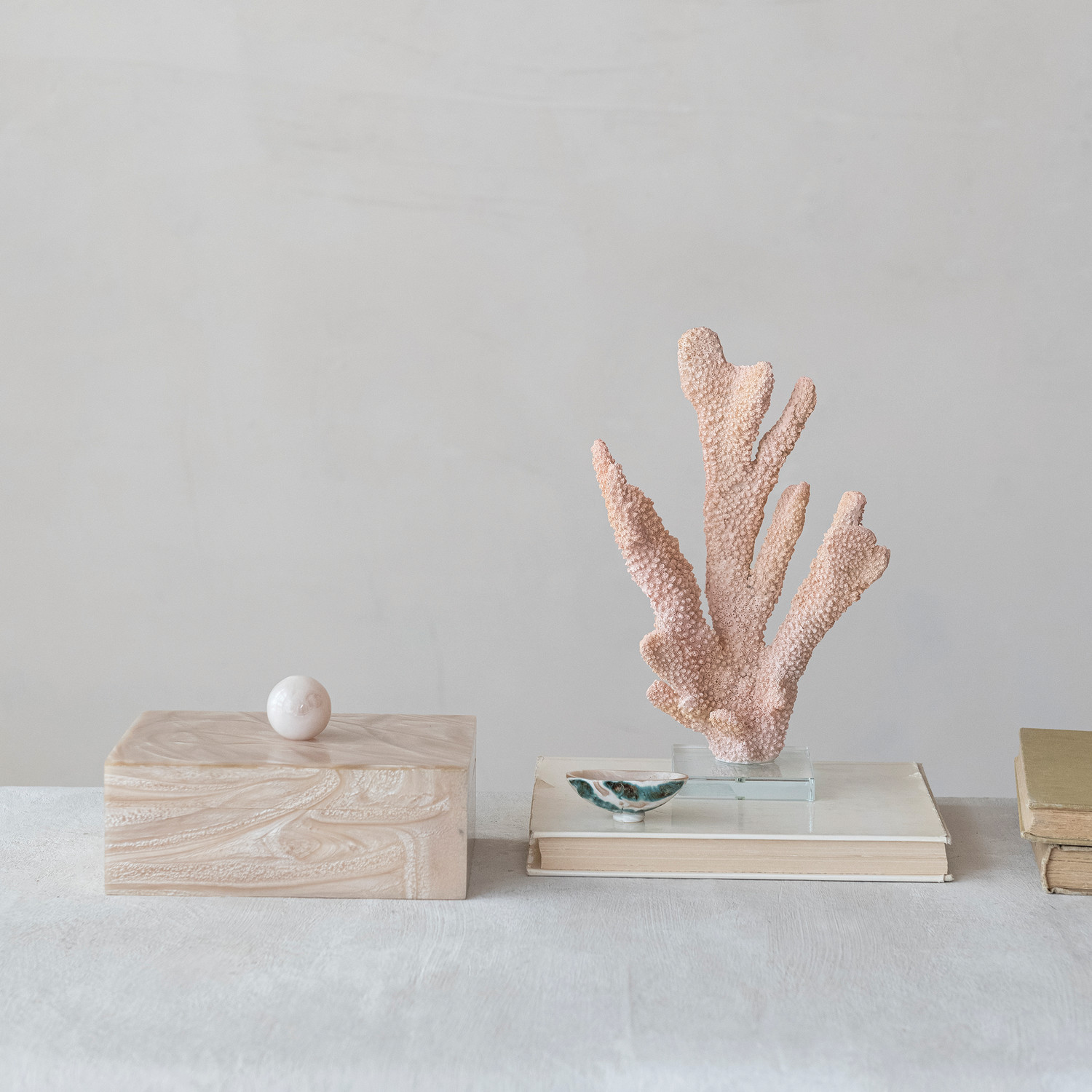Marbled Resin & MDF Box with Ball Handle, Pearlized Finish (Each One Will Vary)