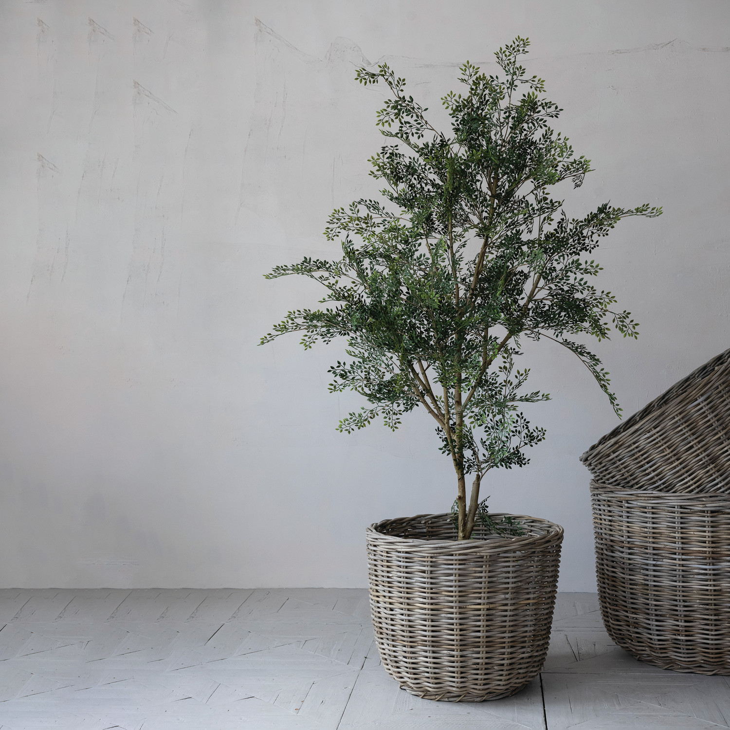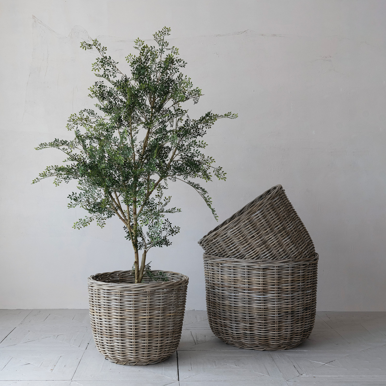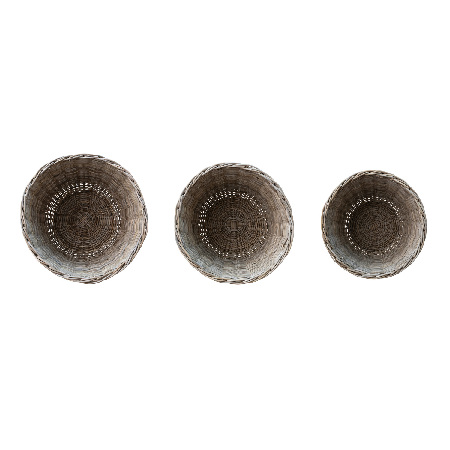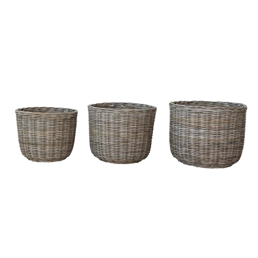 Hand-Woven Rattan Baskets, Grey Washed, Set of 3