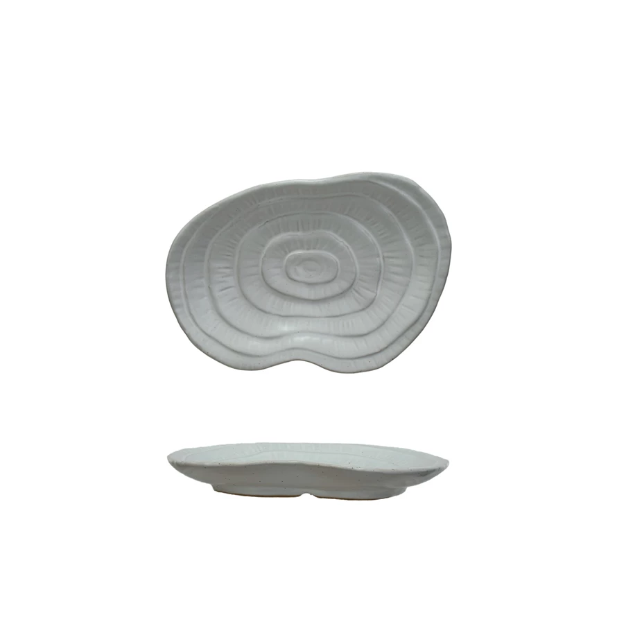 Catalog Name: 6"L x 4-1/4"W Stoneware Wood Slice Shaped Soap Dish, Reactive Glaze, White (Each One Will Vary)