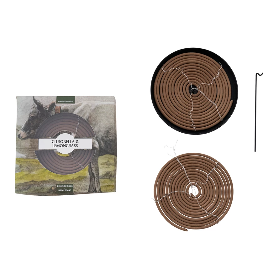 2 Piece Outdoor Hanging Incense Coils with Stand, Set of 3 in Box