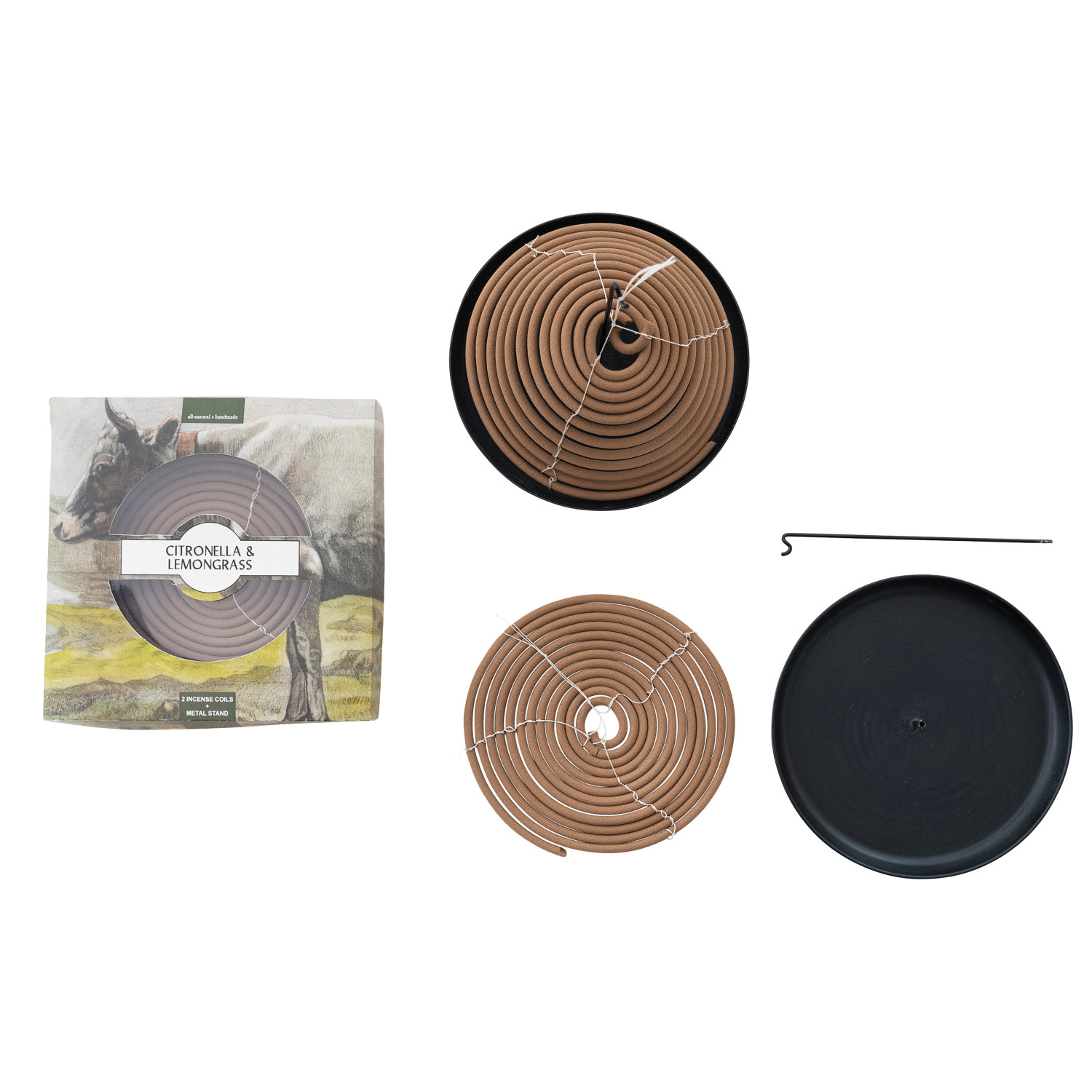 2 Piece Outdoor Hanging Incense Coils with Stand, Set of 3 in Box