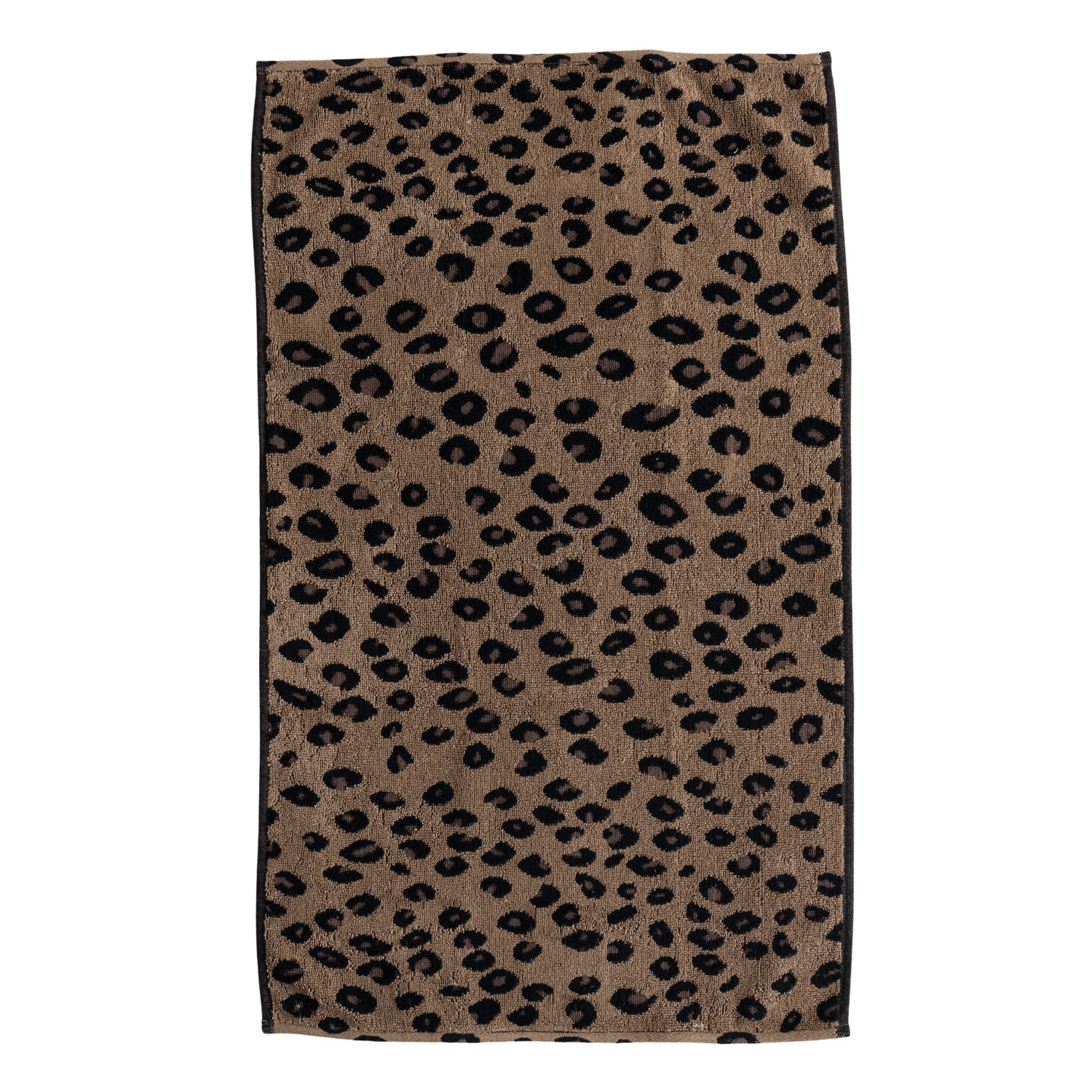 Woven Cotton Terry Hand Towel with Leopard Print Pattern & Loop, Brown & Black