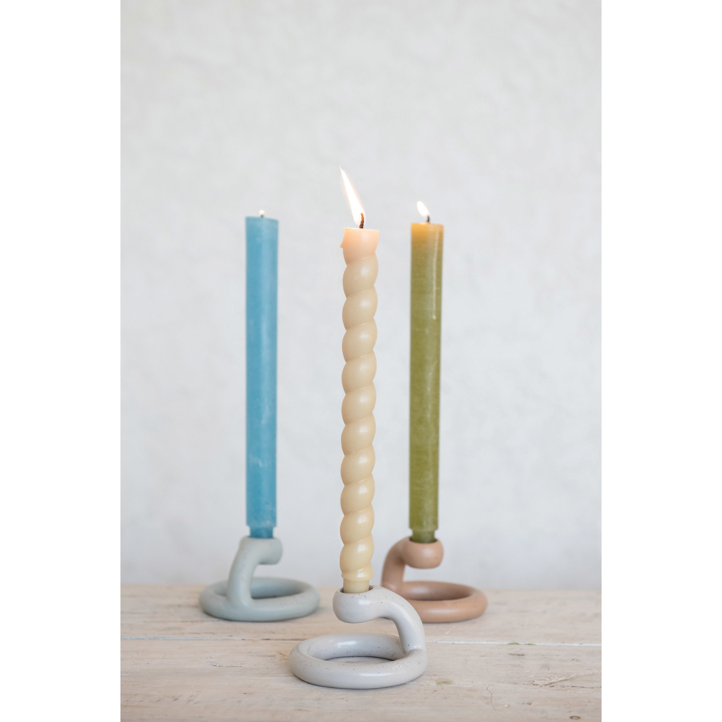 These taper holders are an effortless way to add both style and ambience to any home. These come in 3 different colors, and each features a matte reactive glaze finish. These are perfect for adding ambient lighting to intimate gatherings, dinners, and parties.