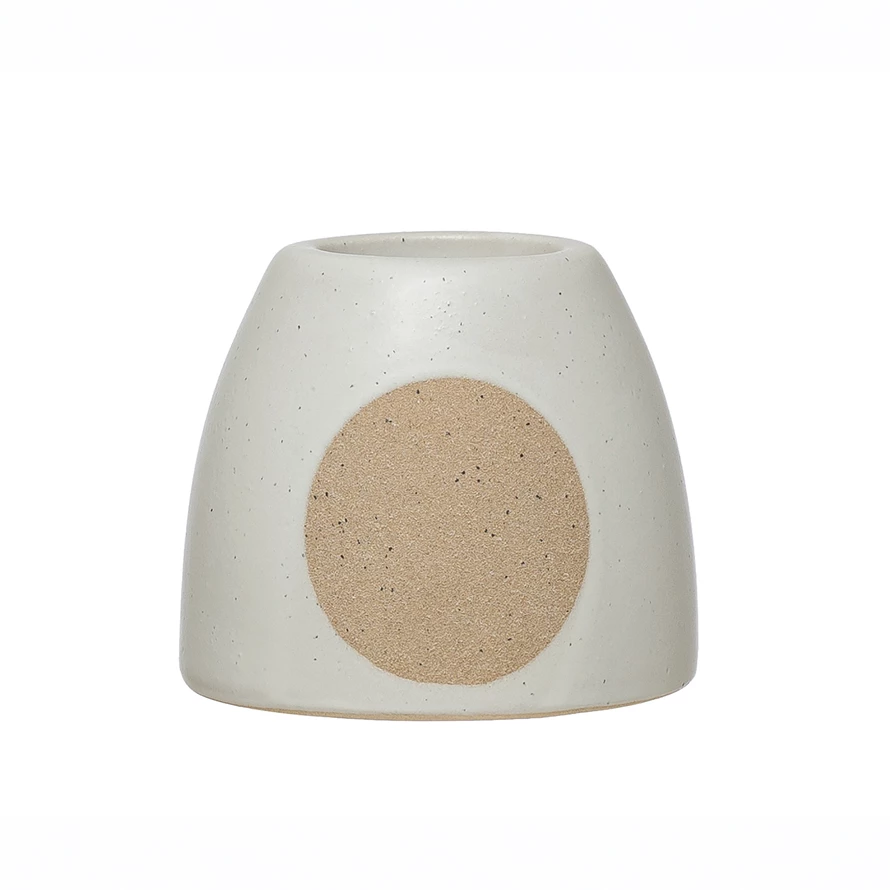 Stoneware Tealight Holder with Circle Design