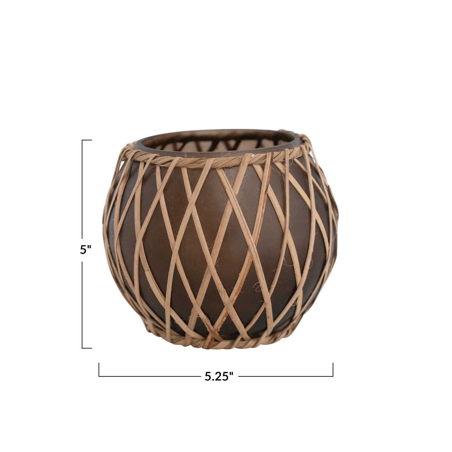 Catalog Name: 5-1/4" Round x 5"H Woven Rattan & Glass Votive Holder, Brown & Natural