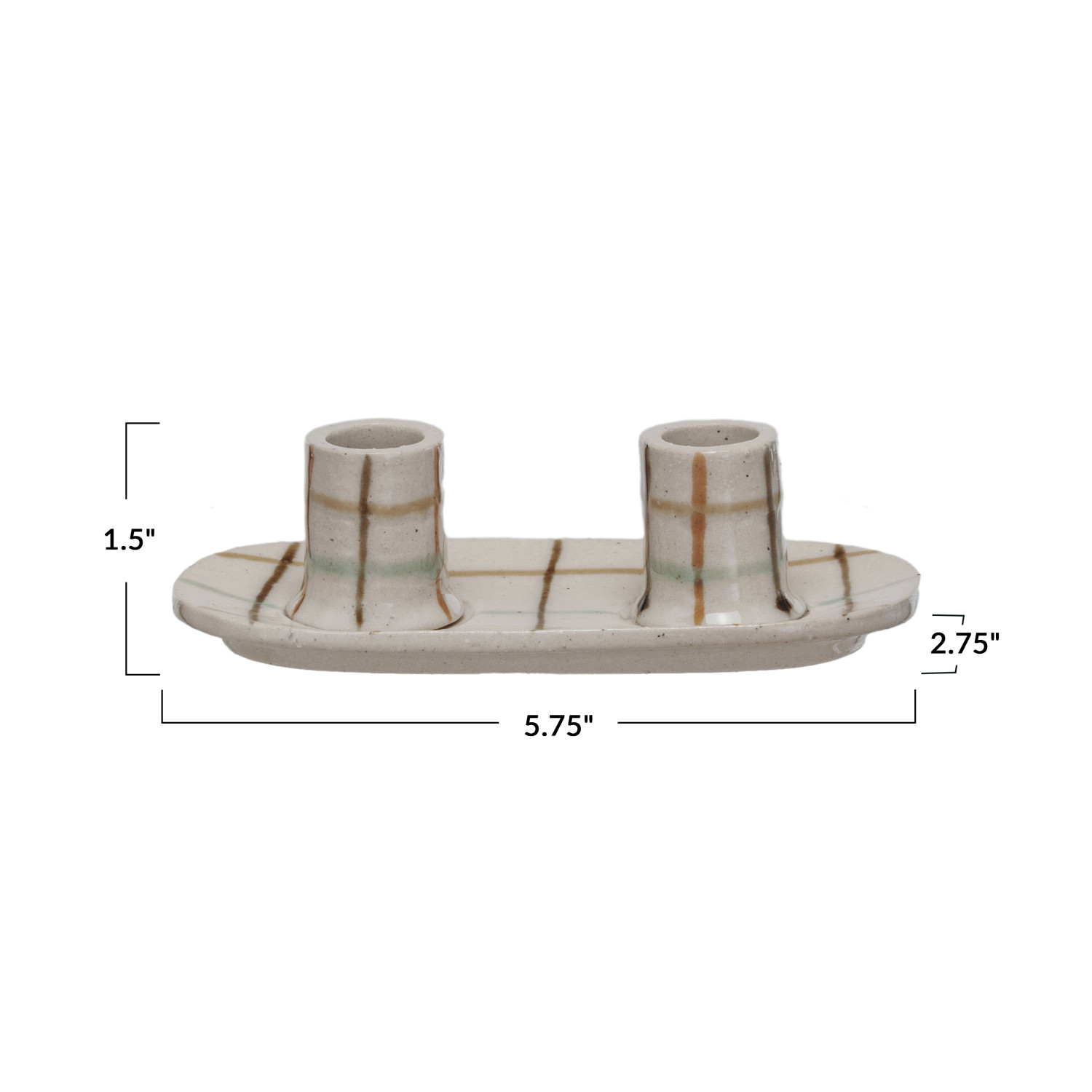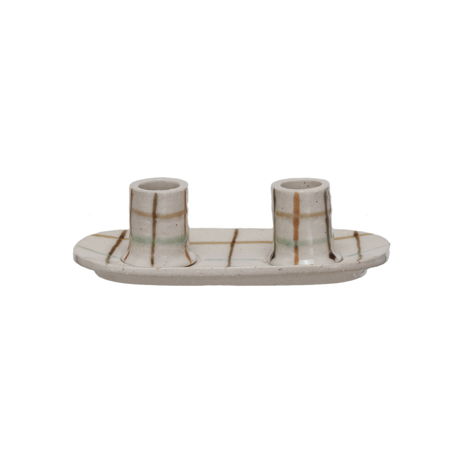 Hand-Painted Stoneware Double Taper Holder (Each One Will Vary)