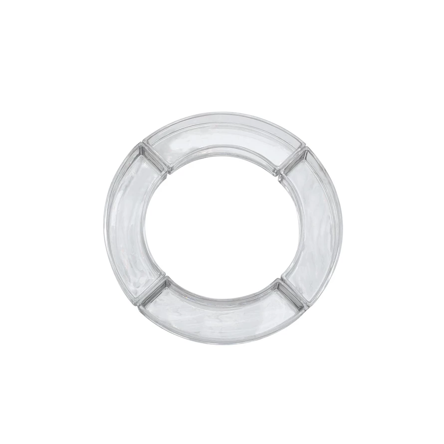 This set of four Curved Glass Dishes and Votive Holders is the epitome of functional elegance. Designed to hold small candies on the side and small candles in the middle, they can be arranged to form a full circle, creating a stunning visual effect. The clear glass catches and reflects the light, adding a warm glow to any setting. It measures 10.25 inches in length and 1.5 inches in height; when arranged together, they form a 14-inch-diameter whole circle and a 9-inch-diameter middle circle. Whether used as a centerpiece during a special dinner or as a decorative element in any living space, these versatile dishes bring a refined touch to any occasion.