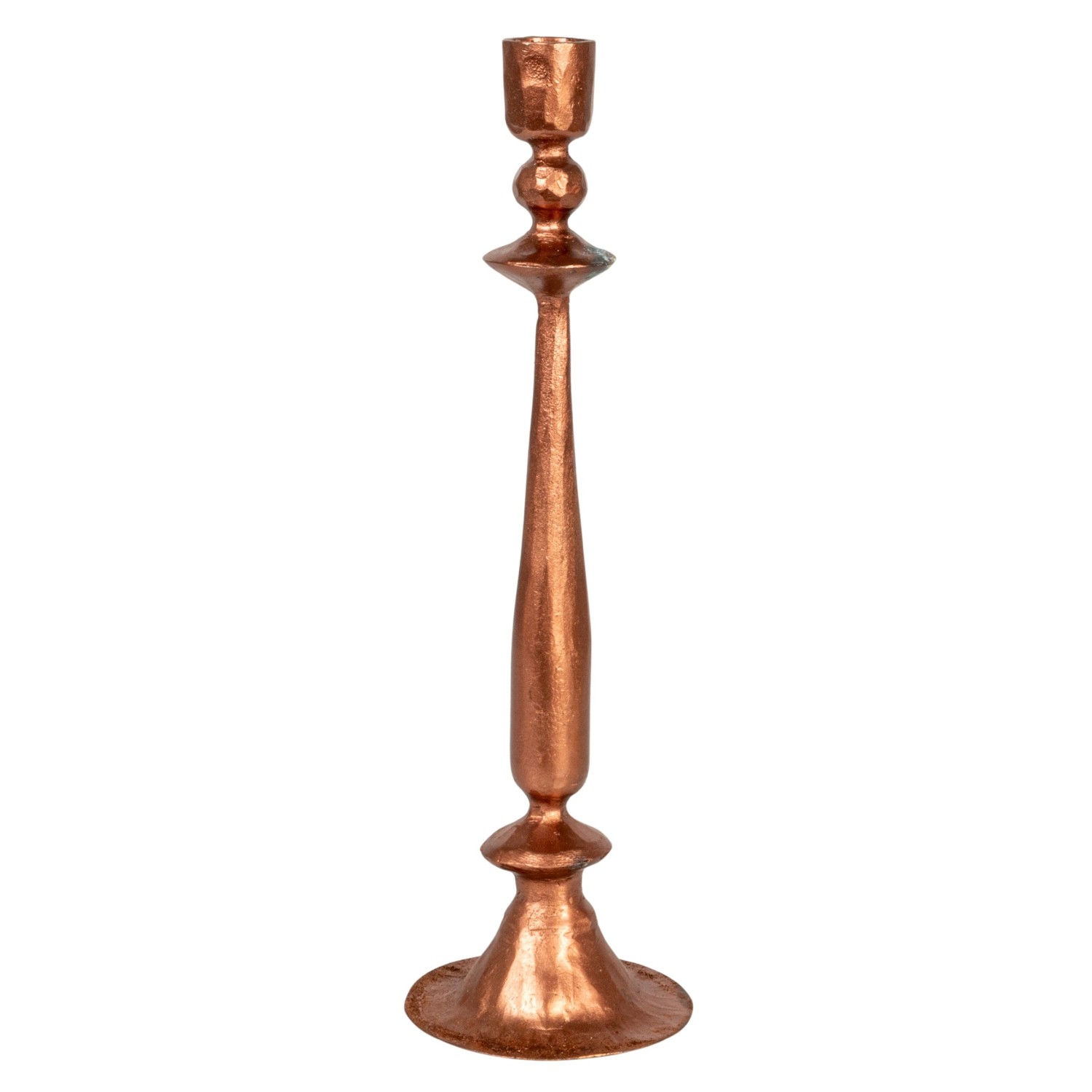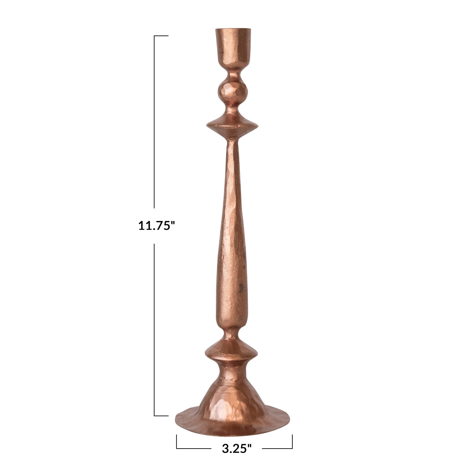 Catalog Name: 3-1/4" Round x 11-3/4"H Hand-Forged Cast Iron Taper Holder, Copper Finish