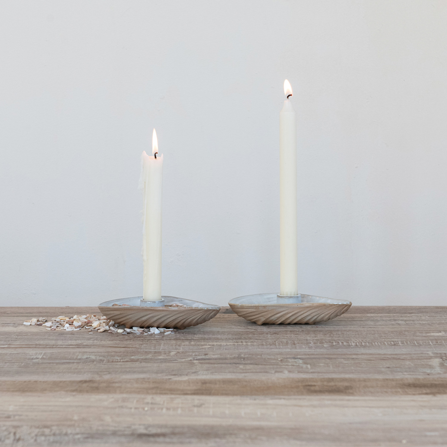Stoneware Oyster Shell Shaped Taper Holder/Dish (Each Will Vary)