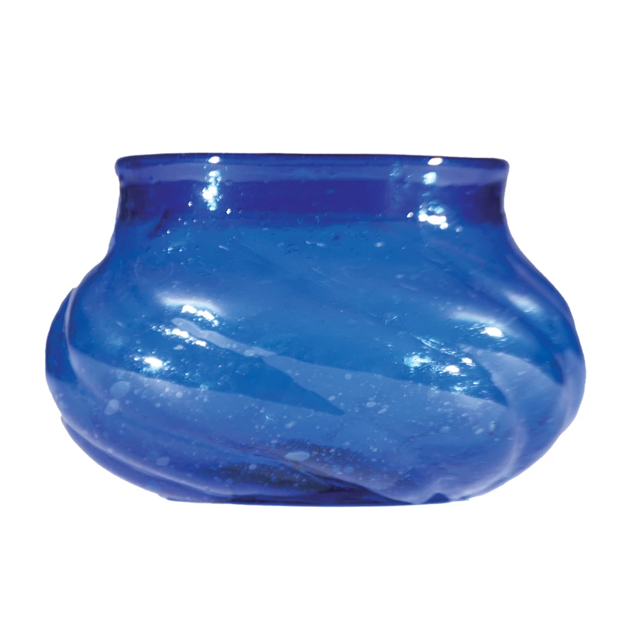 Hand-Blown Seeded Twisted Glass Tealight/Votive Holder, Blue