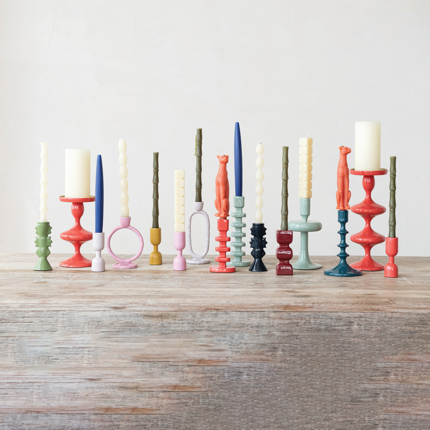 Catalog Name: 4-1/2"L x 3"W x 6"H Enameled Aluminum Circle Taper Holder, Pink
