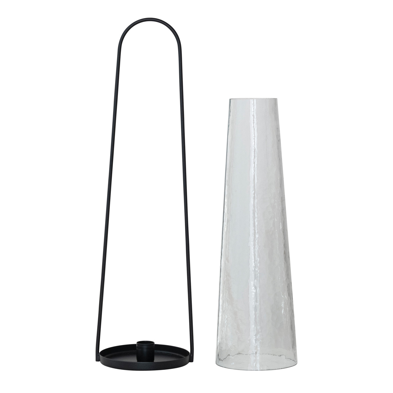 Metal Lantern Taper Holder with Handle & Hammered Glass Hurricane, Black, Set of 2